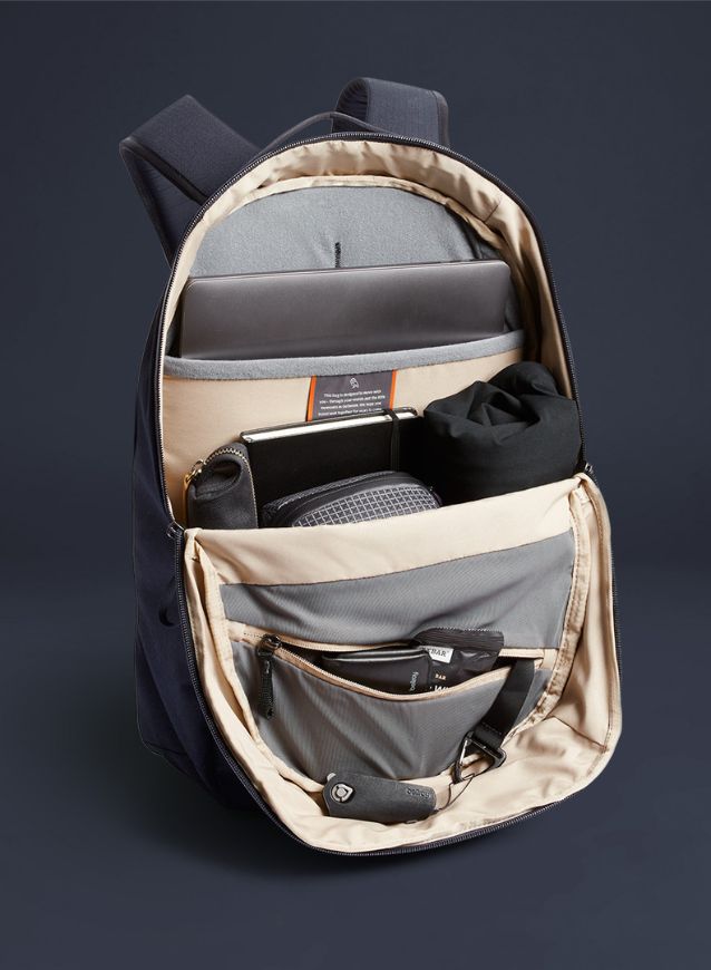 Via Backpack - NavyVendor: BellroyThis clean, minimalist backpack is designed for life to, from and in the office, with clever access and all-day comfort. Design Insights Padded 16” laptop sleeve Dropdown front panel access Internal mesh zip pocket Built-in key clip Raised mesh sunglasses pocket Contoured padded back...