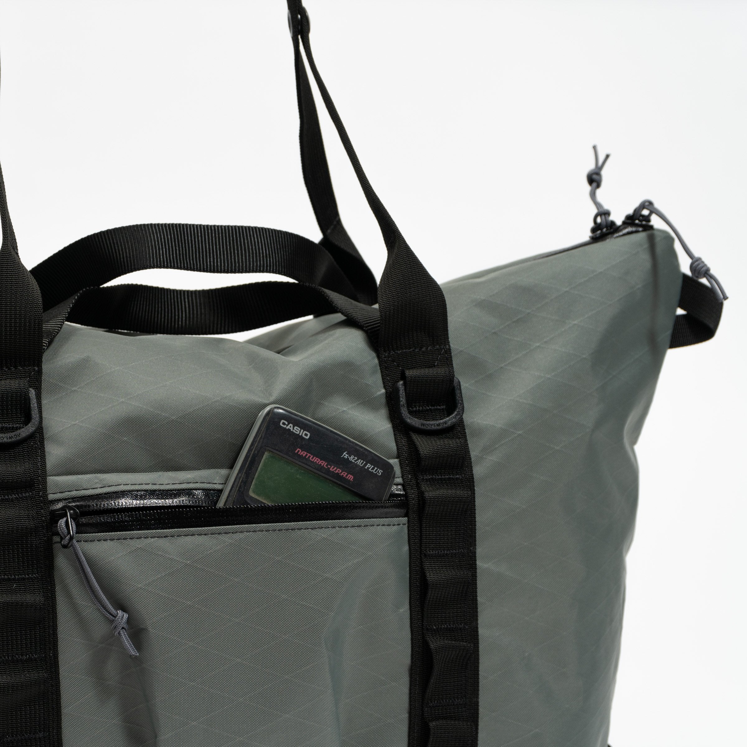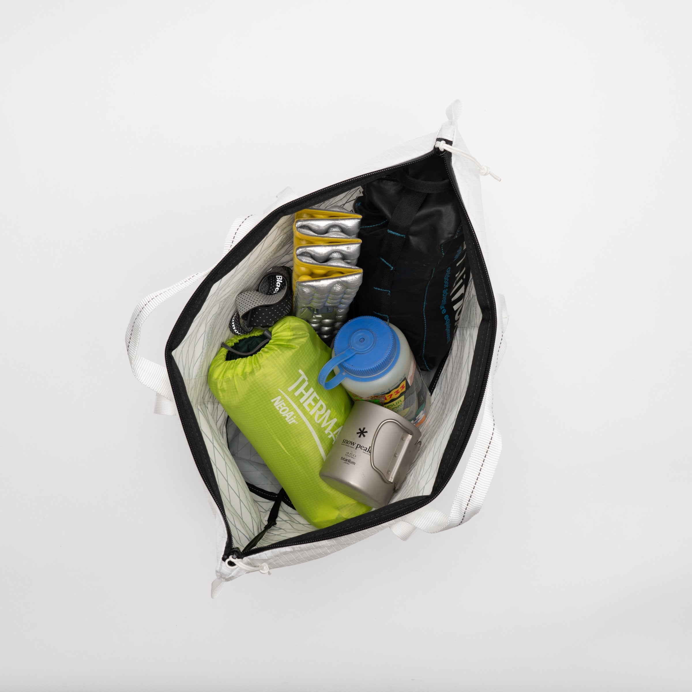 Our best bag for hauling crap. The Zip Tote is large and simple, which means it can do a lot. Weekend travel, trips to the gym, picnics - throw it in and get going. The Ecopak fabric, Cordura reinforcements, and water resistant zippers make the Zip Tote light, strong, and dry. The foam in the base and the rigidity of the X-PAC allow the bag to stand on its own and stay open for easy access to the depths of the light grey interior. Stash small items in the exterior zip pocket and lash overflow gear to the daisy chains.