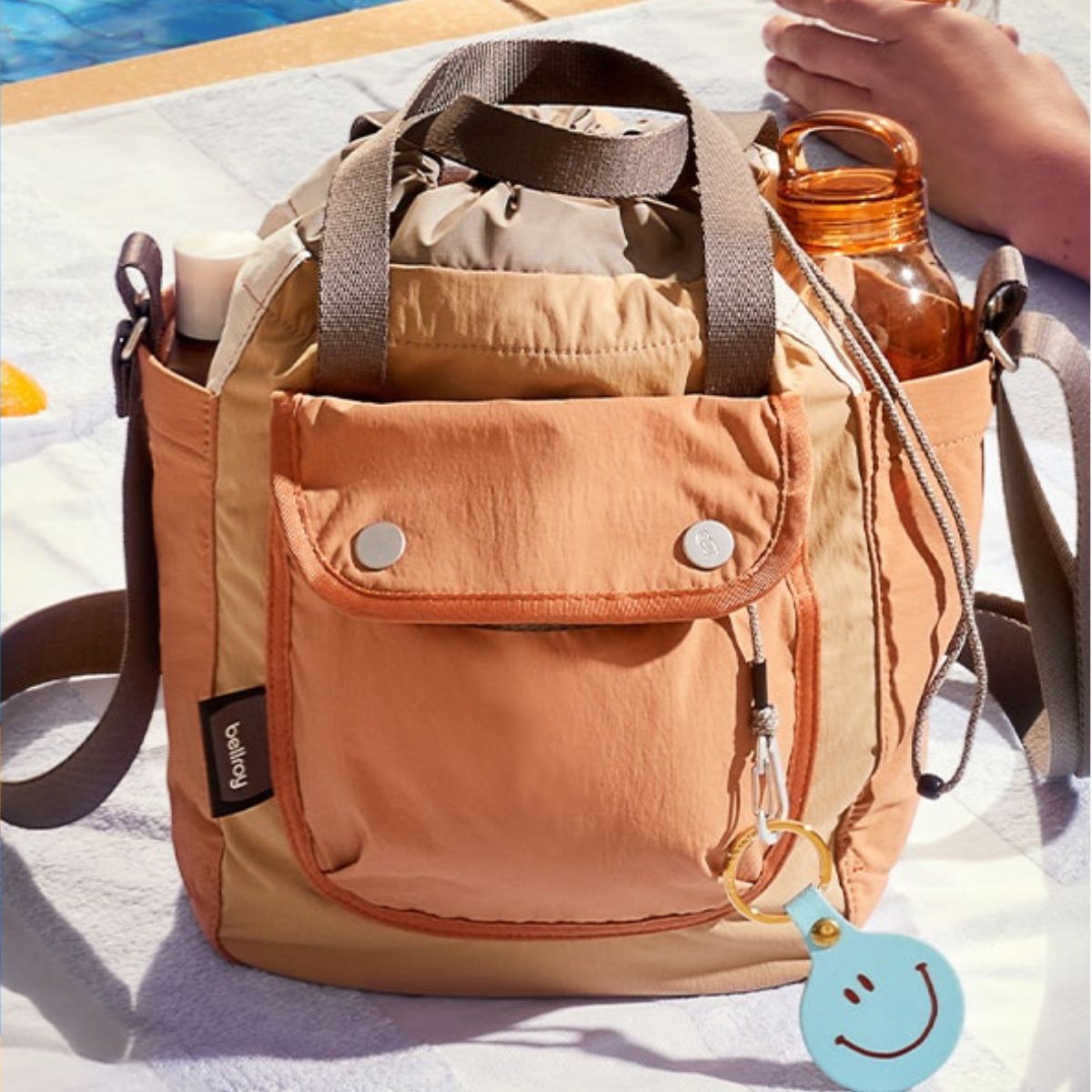 Wear this bucket bag across your body, slung off your shoulder, or swung by the carry handles. The only rule: don’t do all three at once.