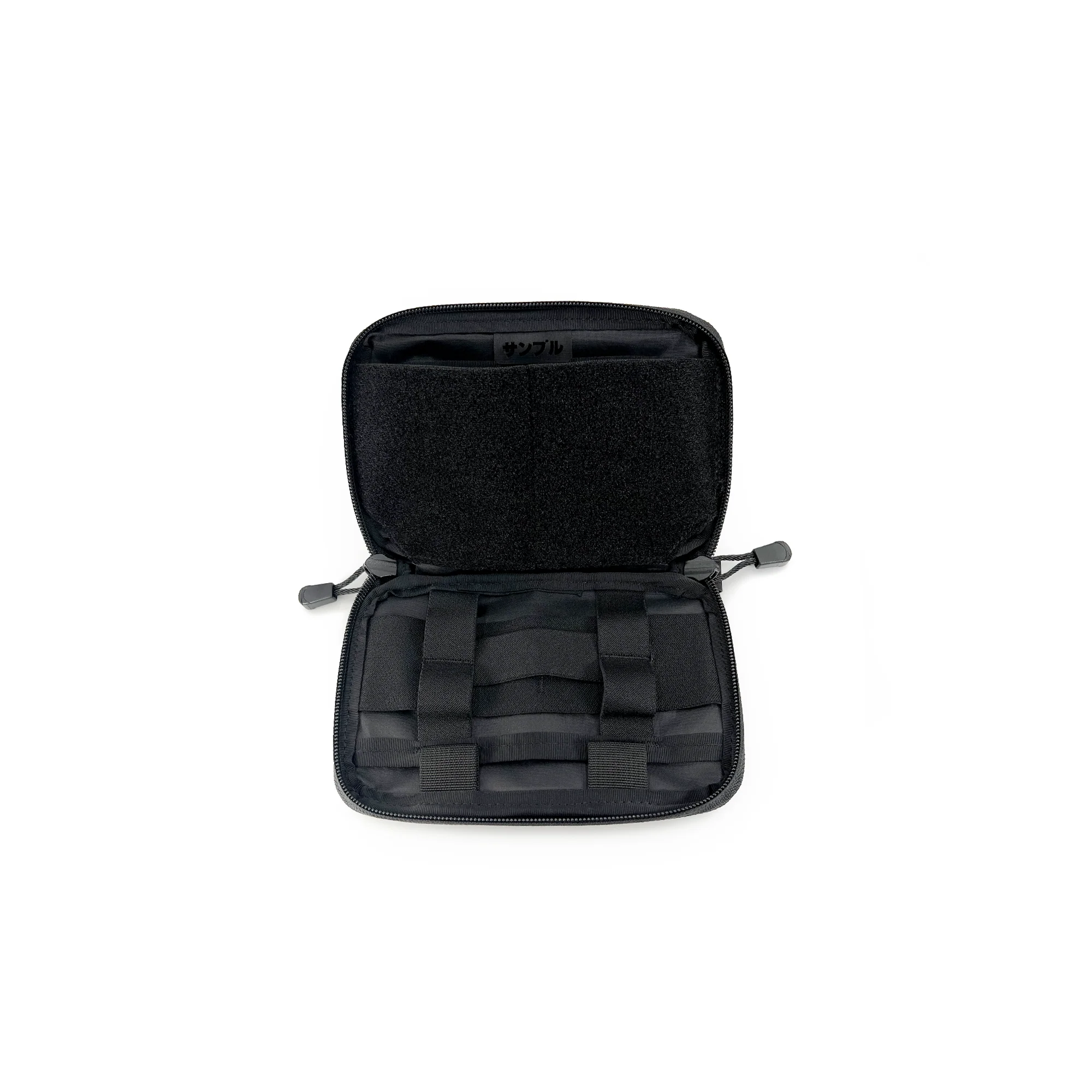 A hand made organizer. Features a full Velcro loop front panel and rear slip pocket.