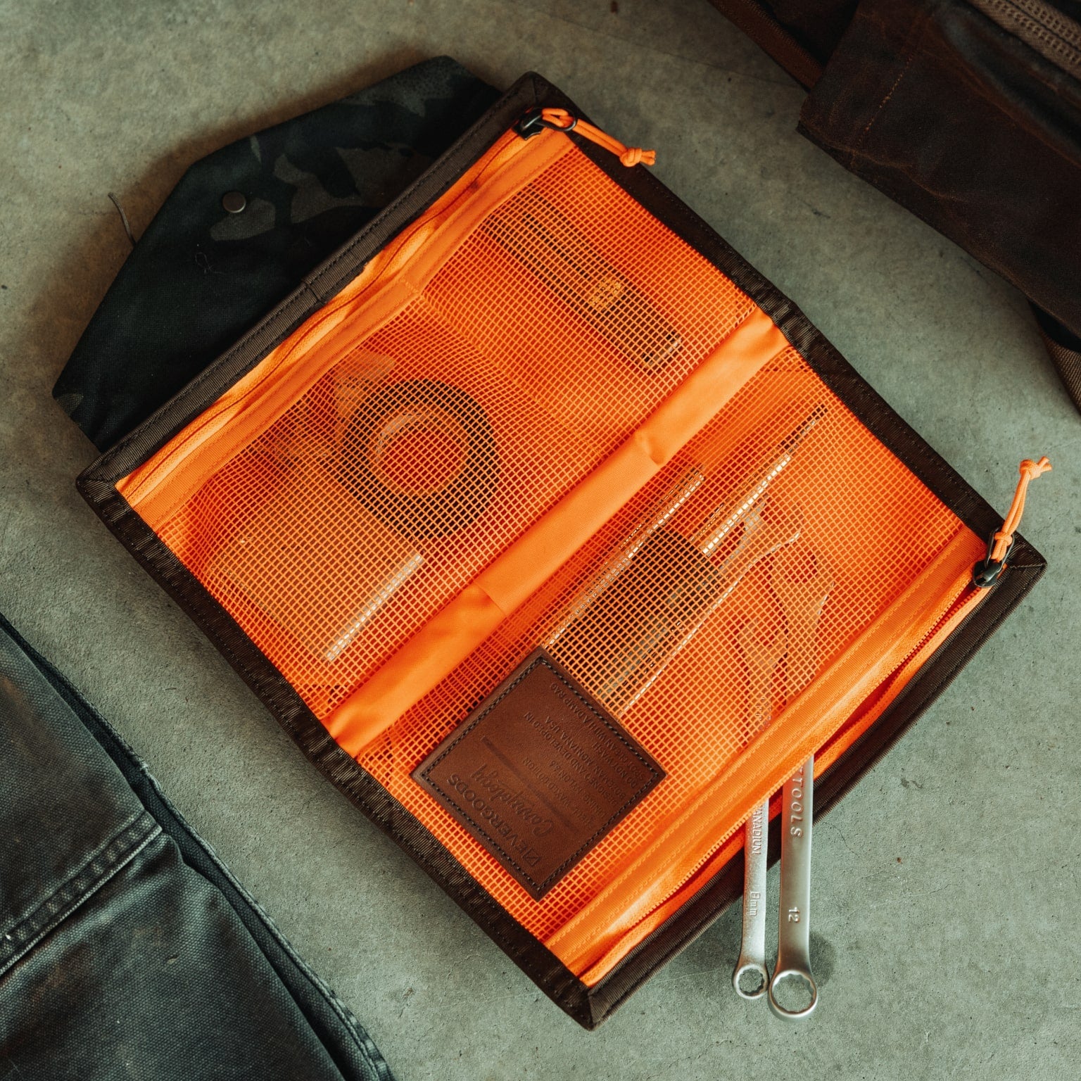 Akin to the Griffin’s fusion of two legendary animals, we combined our go-to pouch, CAP1, with the historic Scottish mill, Halley Stevensons. We built the pouch in three unique colors of P400 Wax C4X, a custom-made high-end cotton & wax finished shell that’s stiff and durable. Combined with a stunning hot orange internal lining and the CAP1’s signature features sets and appearance, the Griffin Edition is modern meets heritage incarnate.