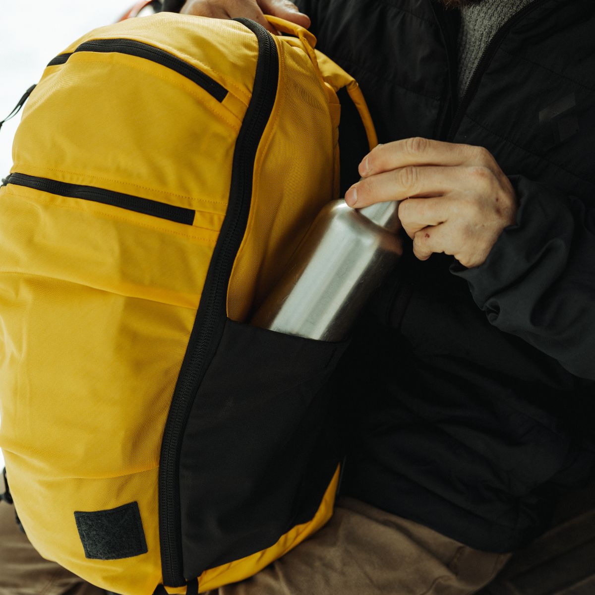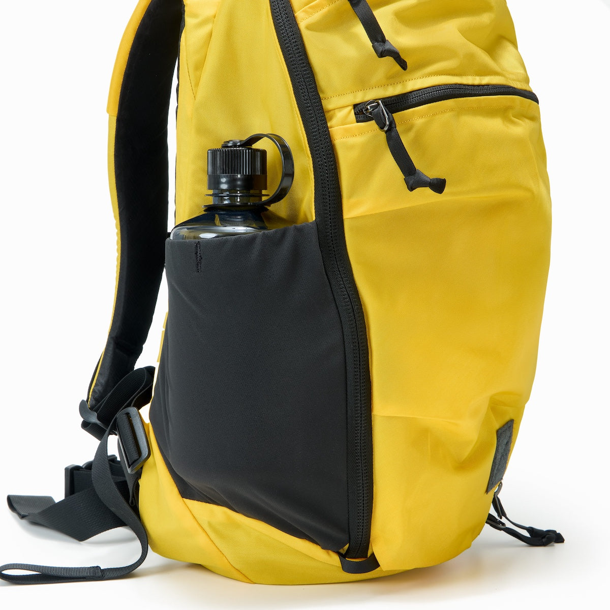 Exterior side pockets built from hard-wearing mountain apparel grade 4-way stretch woven for easy access to gloves, 1 liter water bottles, sunglasses, or CAP1. Holds contents close and expands for larger items. Elastic inside top edge helps contain items and maintain a low-profile.