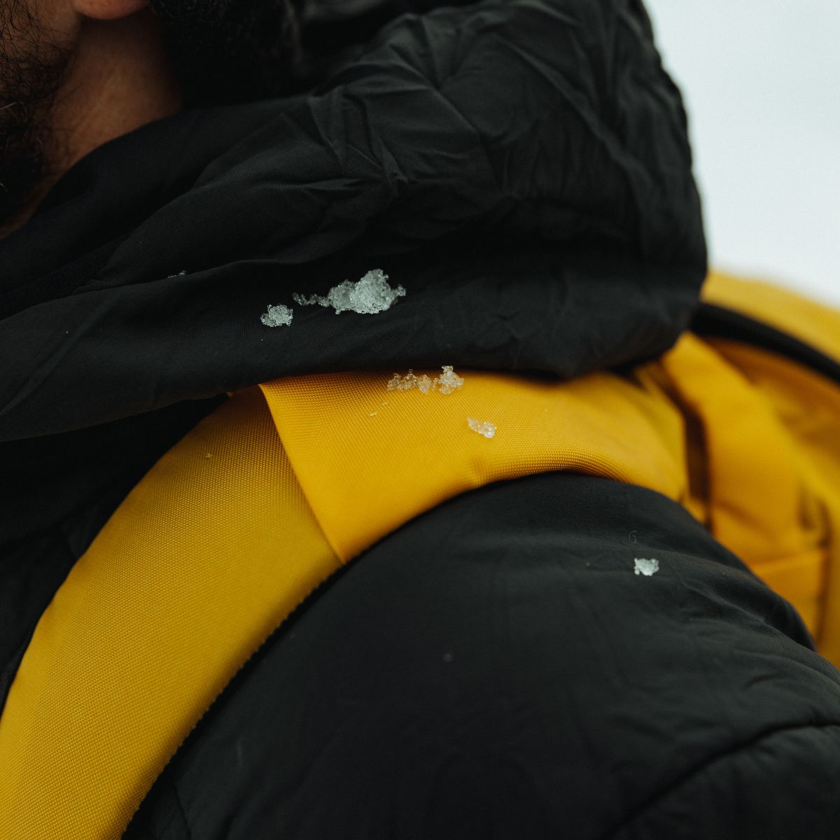 • Shell fabric: Balanced woven 420d HT nylon 6 with water repellent finish PU coating