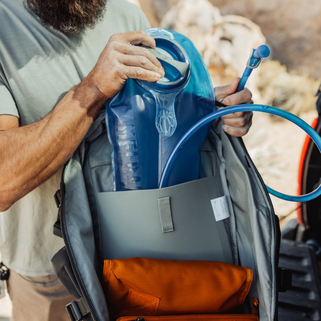 - Internal Organization: Stretch Woven Sleeve (Hydration/Laptop), Panel Security Pocket, Key Leash, Mesh Panel Pocket