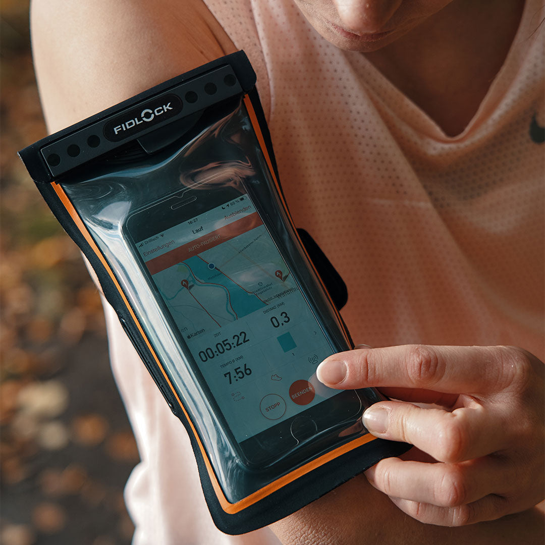 If you are surprised by a downpour while running, the bag on the upper arm is already prepared. Whether it is a drizzle or a rain shower – thanks to the hermetic closure technology, the smartphone is 100% protected against water and even the finest dust.
