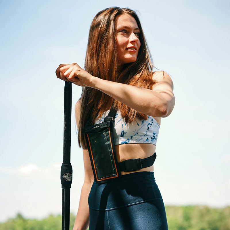 Full speed ahead: Whether on rollers, skids, on a board or skis – the chest bag follows every track. Thanks to the high-tech material, the smartphone remains touch-enabled: a short tab on the display and the wild ride is immediately recorded. There are no limits to the areas of application, the bag goes to every limit and lets no speck of dust, raindrop, or snowflake inside.