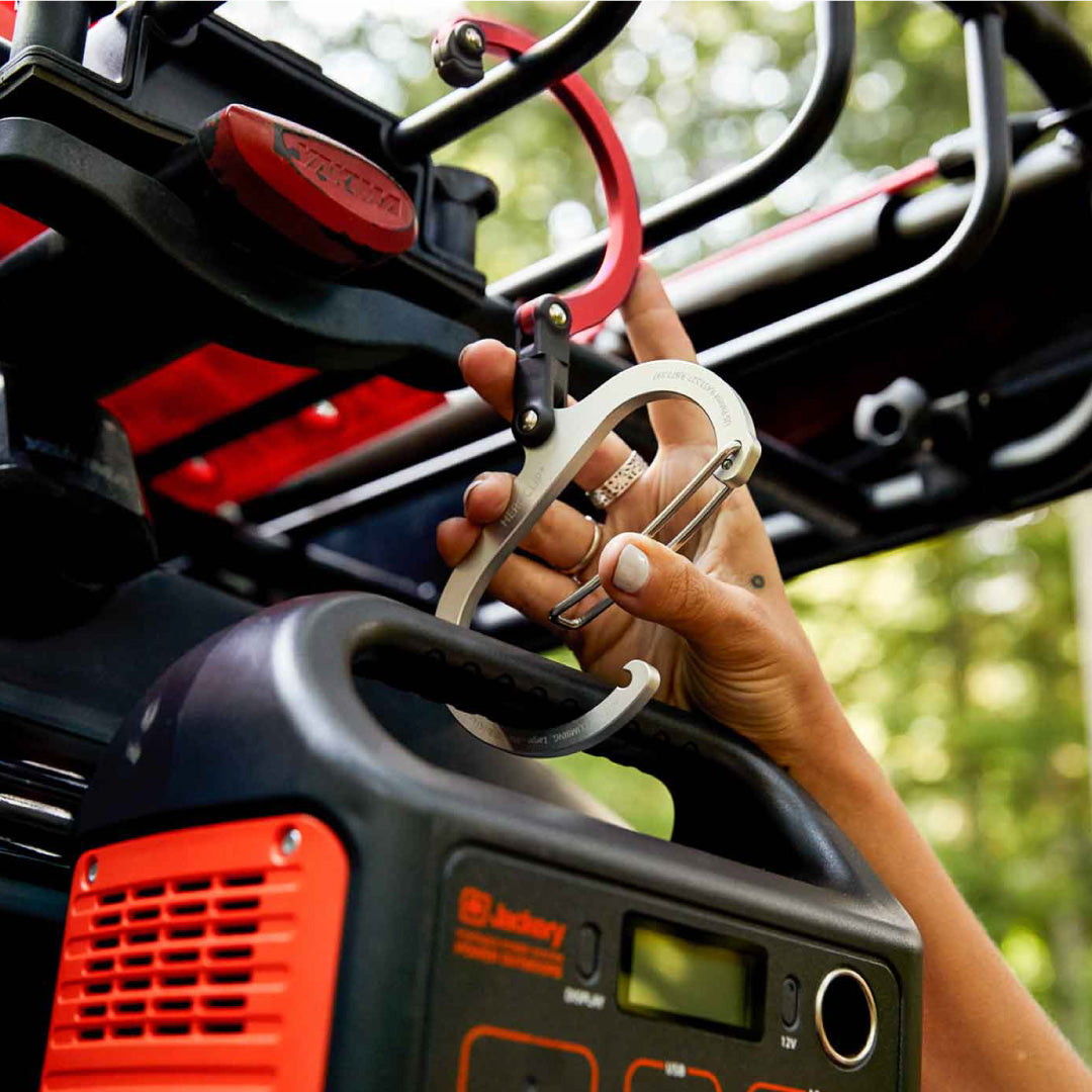 The ideal size for your larger gear needs, Heroclip Large lets you hook and hang up to 100lbs wherever your adventures take you. An impressive 40% larger than our Medium clip, Heroclip Large is the ideal choice for sizeable items including kayaks, floodlights, backpacking packs, and paddleboards. This large hybrid-style clip lets you hook, hang, and carry heavier gear to keep it off the ground.