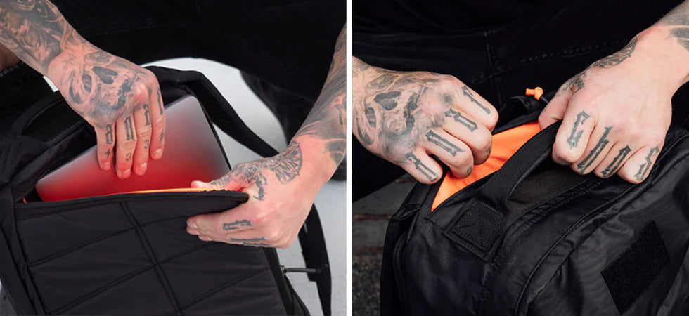 • Bombproof Laptop Compartment next to your back is extra reinforced and has a false bottom so that when you set your ruck down, your laptop won't even notice.