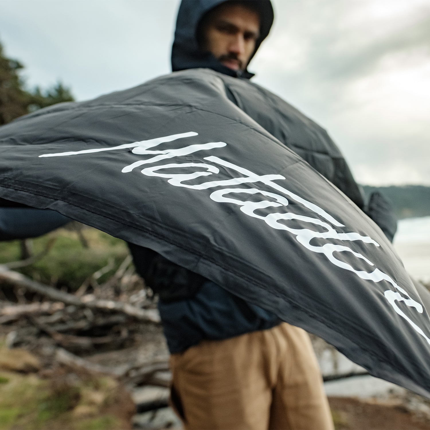 The Pocket Blanket™ now contains recycled materials that meet Bluesign® criteria, in alignment with Matador®'s sustainability goals. Additionally, the Easy-Pack Pattern™ is now printed-on instead of sewn-in, allowing for improved water resistance.