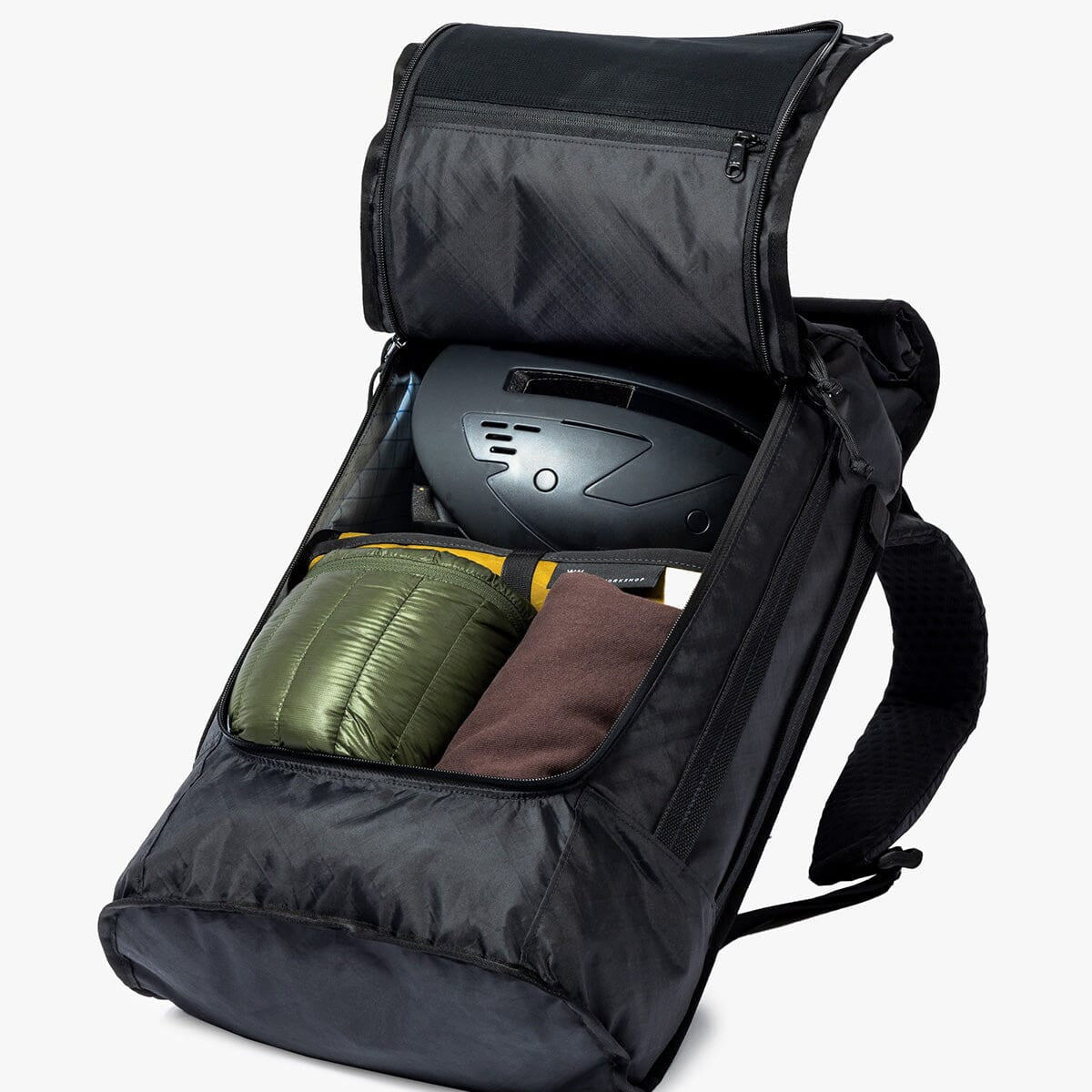 Made in USA and constructed with ECOPAK™ fabrics by Challenge, the pack is fully weatherproof and sustainably designed. Made from 100% recycled REPREVE® rPET fiber and Challenge RUV™ film, ECOPAK™ resists moisture, provides 5x greater UV protection than conventional materials, and maintains its color and durability over time. YKK Aquaguard zippers and a Fidlock magnetic closure ensure secure, easy access in any environment.