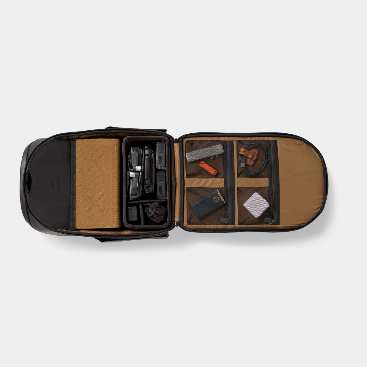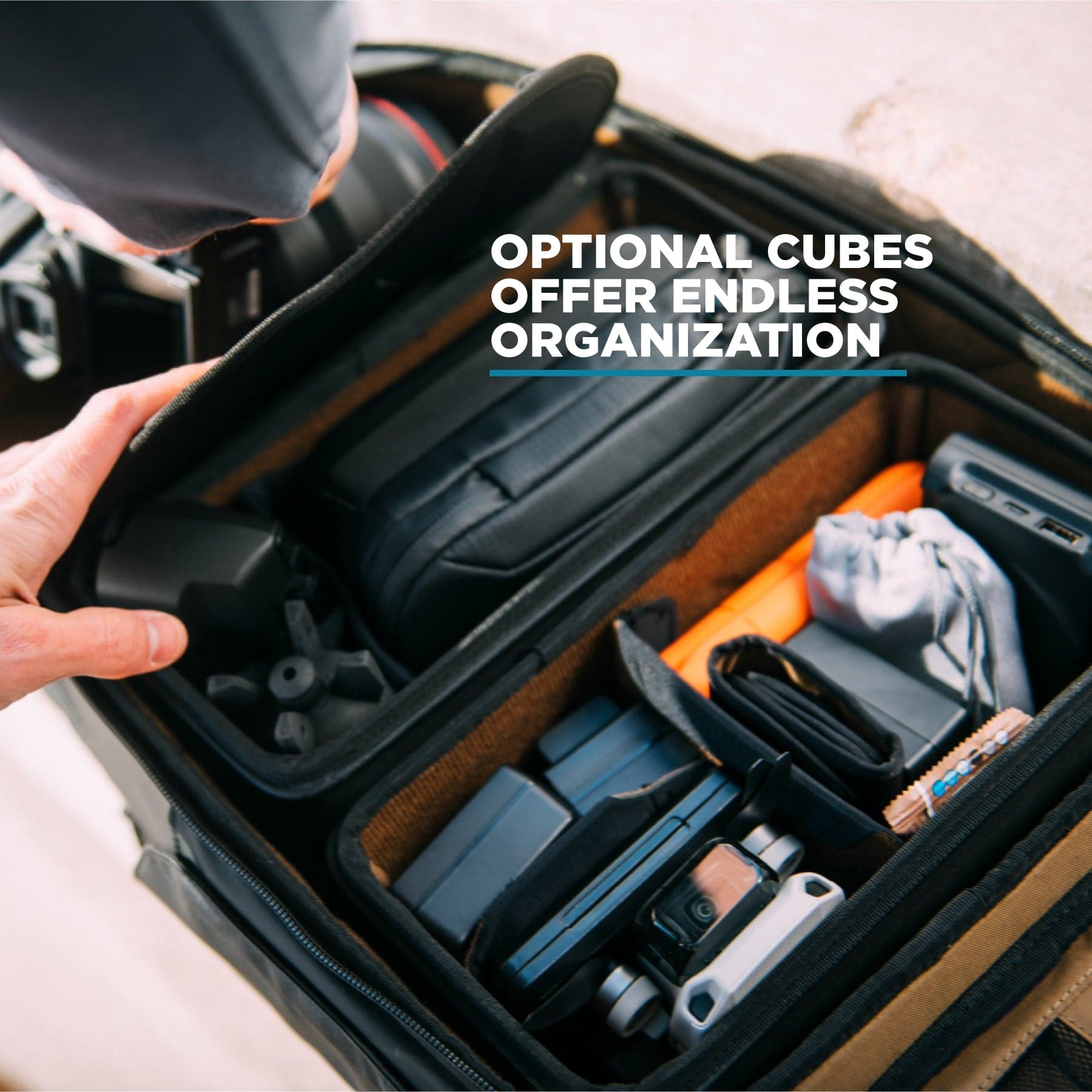 Use one small cube, two small cubes, one large cube or a combination of cubes to keep your systems built out by swapping from camera to drone to everyday items seamlessly. We thought carefully about accessing your gear, and designed a quick and easy top access, an external laptop sleeve (fits up to a 16” MacBook Pro), and full back access. Use the internal articulating ladder system to split up your gear or remove the ladder completely. The ladder system also allows you to expand the top area of the bag. On the inside of back panel, there are four internal zipper mesh pockets for organization of smaller items.