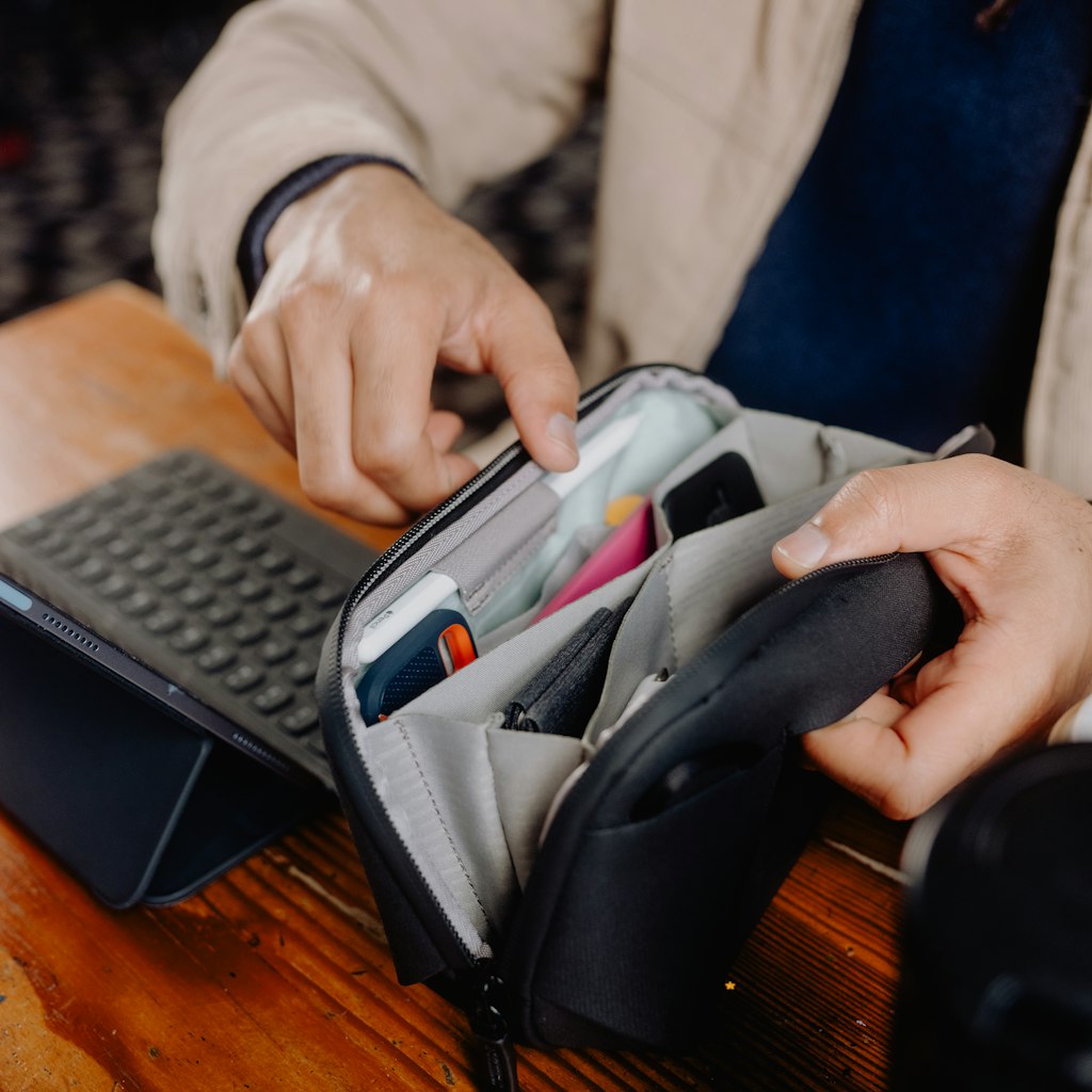 Origami-style pockets offer enormous spatial efficiency, allowing you to pack more than you expect into a small space and keeping your items neatly organized at the same time. Keep your items like pens, SD cards, cables and batteries easily within reach using the elastic accessory loops.