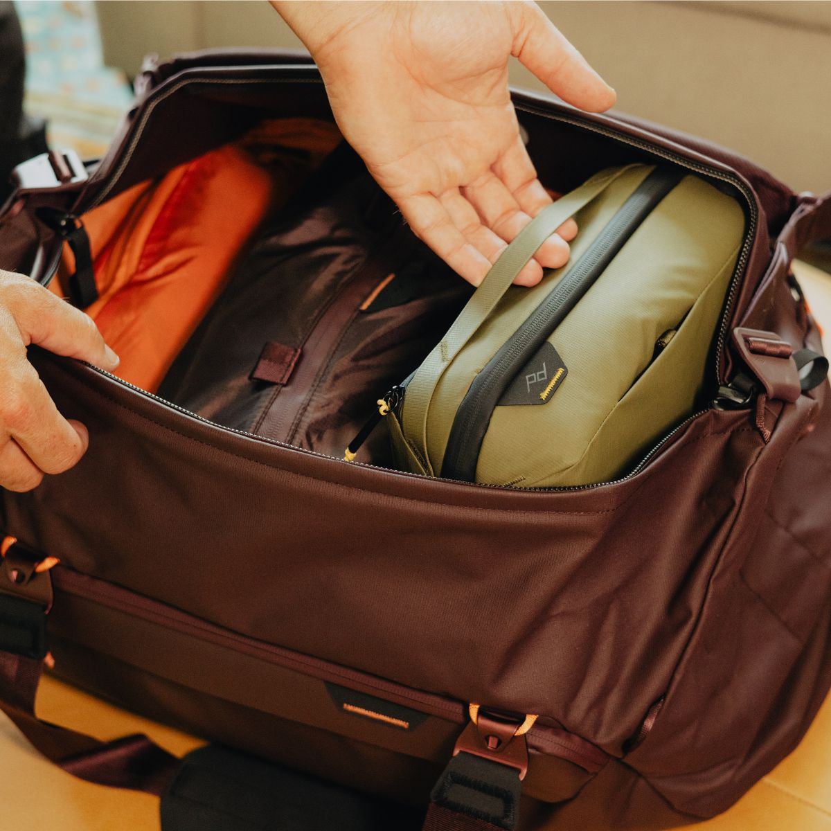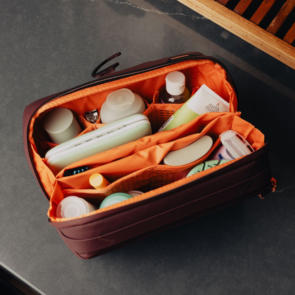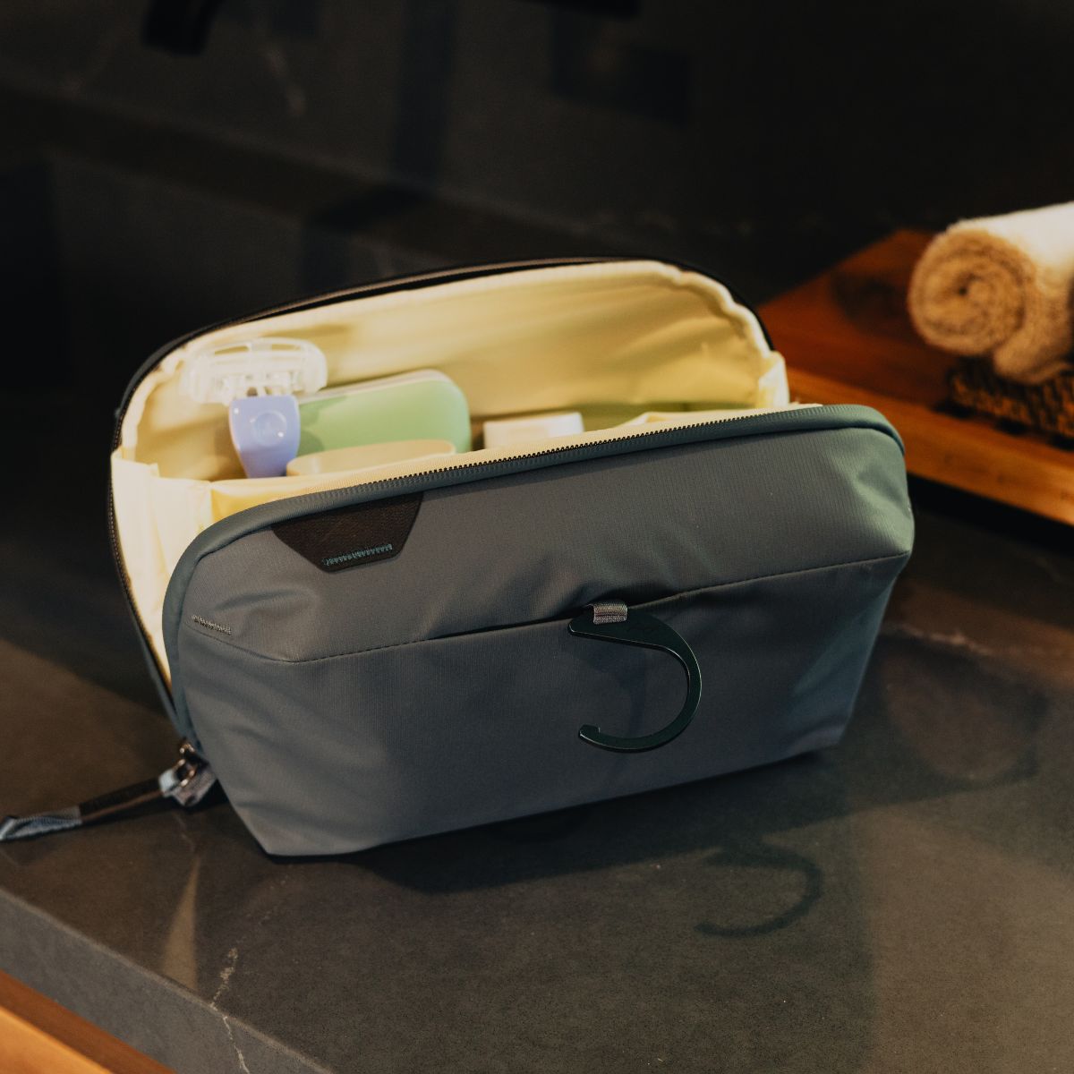 The original Wash Pouch is designed to be your go-to toiletry bag for any trip, offering a versatile size that balances capacity and portability. Ideal for both short getaways and extended travels, it fits a variety of personal care items, making it the perfect choice if you only want to invest in one toiletry bag. With its upright stance when open, stowable aluminum hook for hanging, and exterior grab handle for quick access, it's easy to use whether you're in a hotel, camping, or on the move. If you're packing lighter, consider the smaller version, which is tailored for minimalist carry-holding just the essentials like a toothbrush, deodorant, a razor, and a few travel-sized bottles.