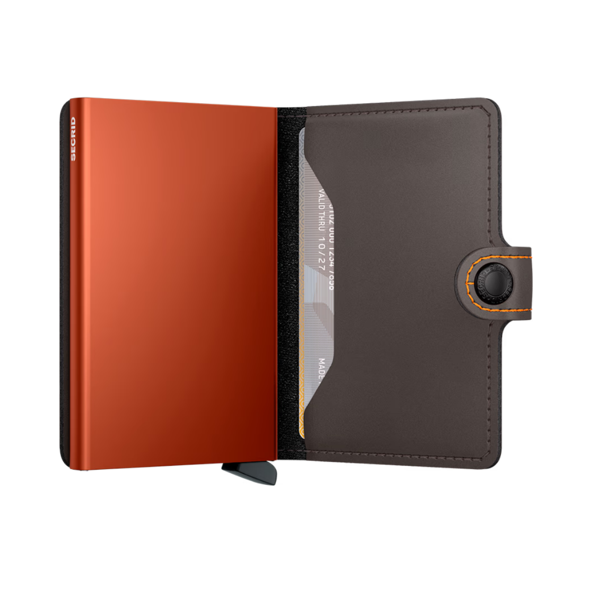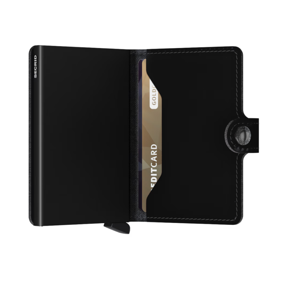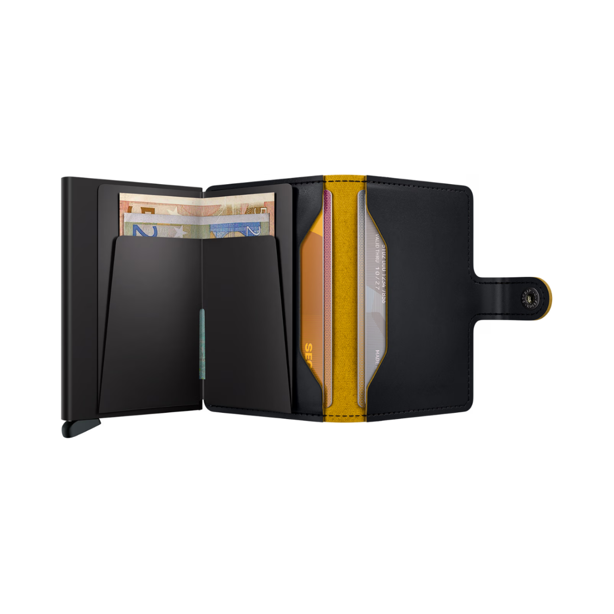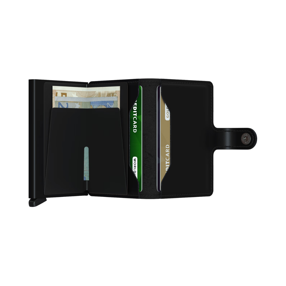 Small in size and surprisingly large in storage capacity, the Miniwallet combines the best of both worlds. The exterior holds banknotes, receipt and cards, while the aluminium Cardprotector allows you to slide out cards with one simple motion and protects them from bending, breaking and unwanted wireless communication.