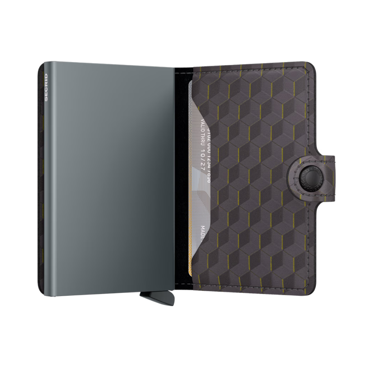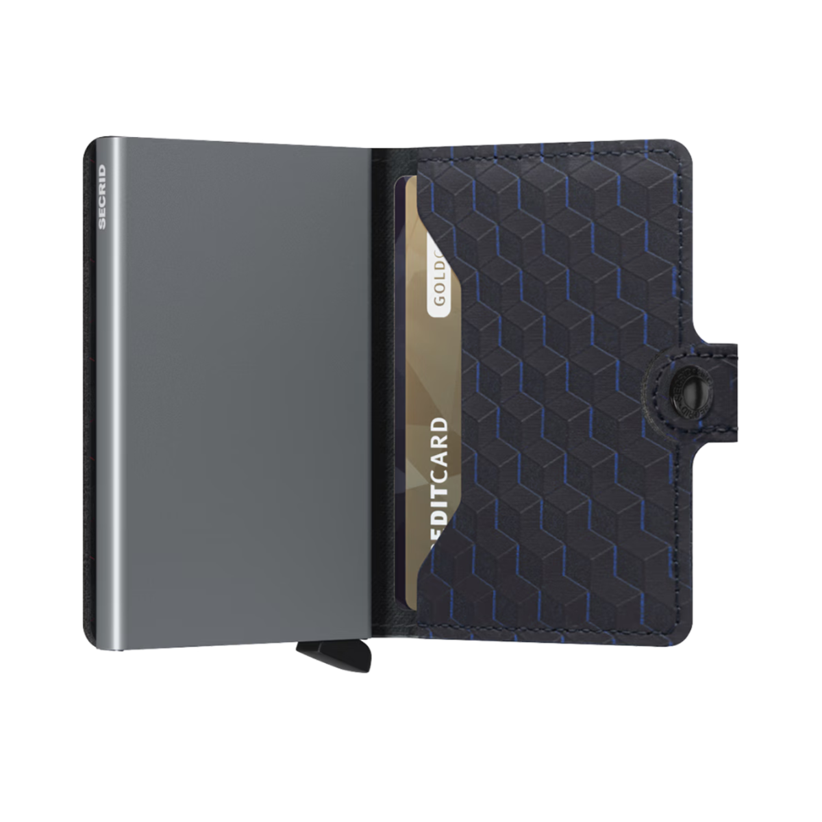 Small in size and surprisingly large in storage capacity, the Miniwallet combines the best of both worlds. The exterior holds banknotes, receipt and cards, while the aluminium Cardprotector allows you to slide out cards with one simple motion and protects them from bending, breaking and unwanted wireless communication.