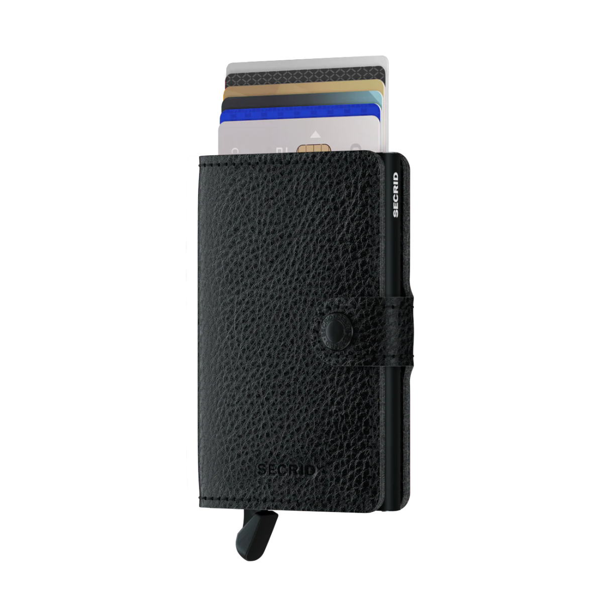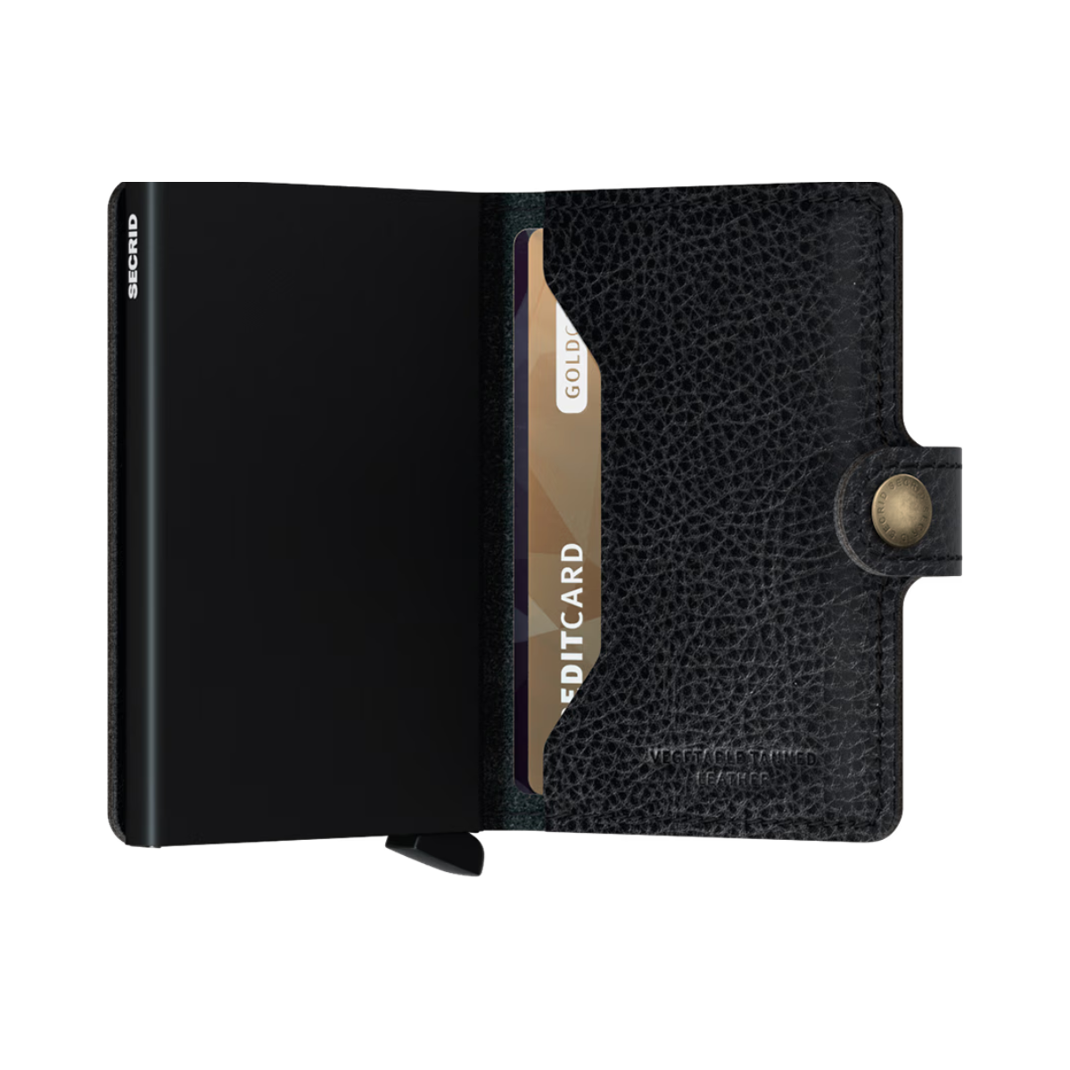 Small in size and surprisingly large in storage capacity, the Miniwallet combines the best of both worlds. The exterior holds banknotes, receipt and cards, while the aluminium Cardprotector allows you to slide out cards with one simple motion and protects them from bending, breaking and unwanted wireless communication.