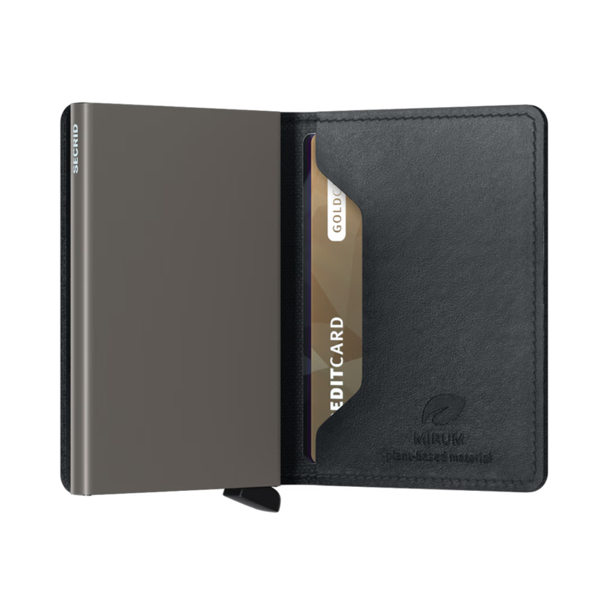 Its slim profile allows the Slimwallet to fit perfectly into any pocket. The open exterior is designed extra wide to accommodate cards, banknotes and receipts. The Cardprotector mechanism enables you to slide out cards with a simple motion, while the aluminium construction protects your cards from bending, breaking and unwanted wireless communication.