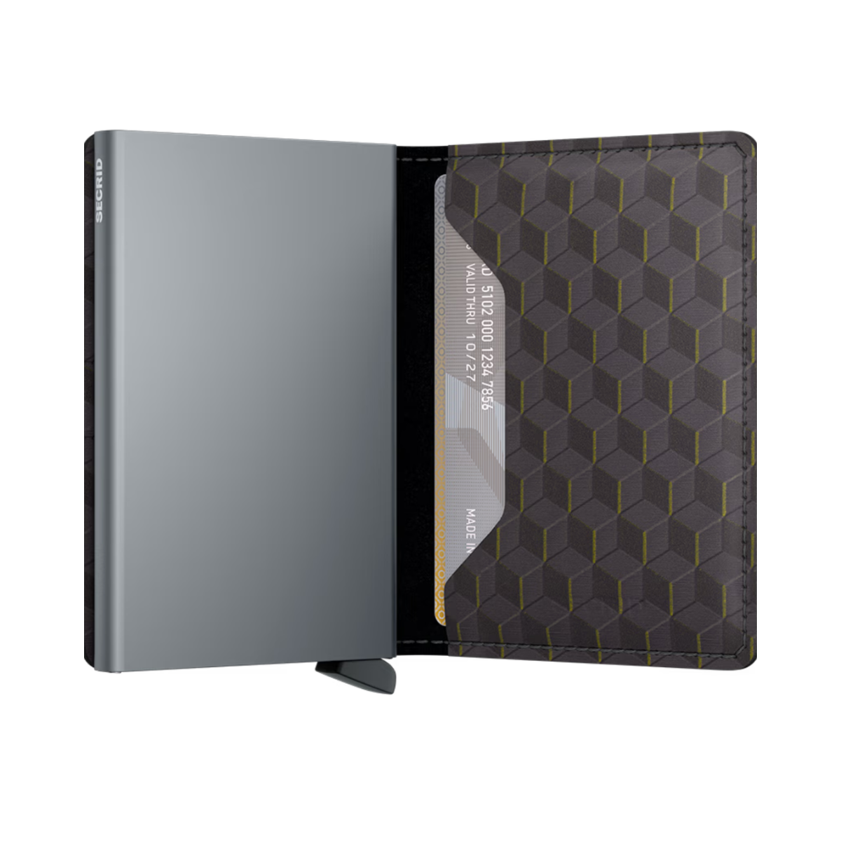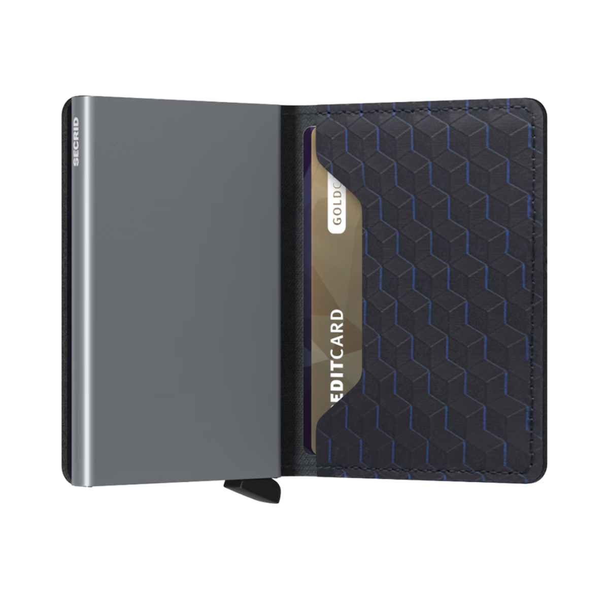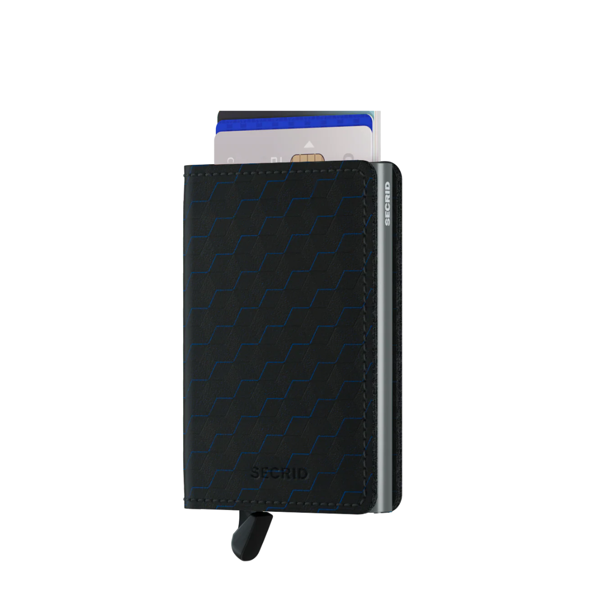 Its slim profile allows the Slimwallet to fit perfectly into any pocket. The open exterior is designed extra wide to accommodate cards, banknotes and receipts. The Cardprotector mechanism enables you to slide out cards with a simple motion, while the aluminium construction protects your cards from bending, breaking and unwanted wireless communication.