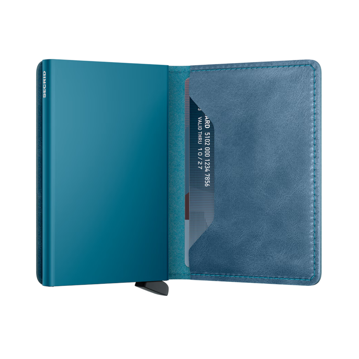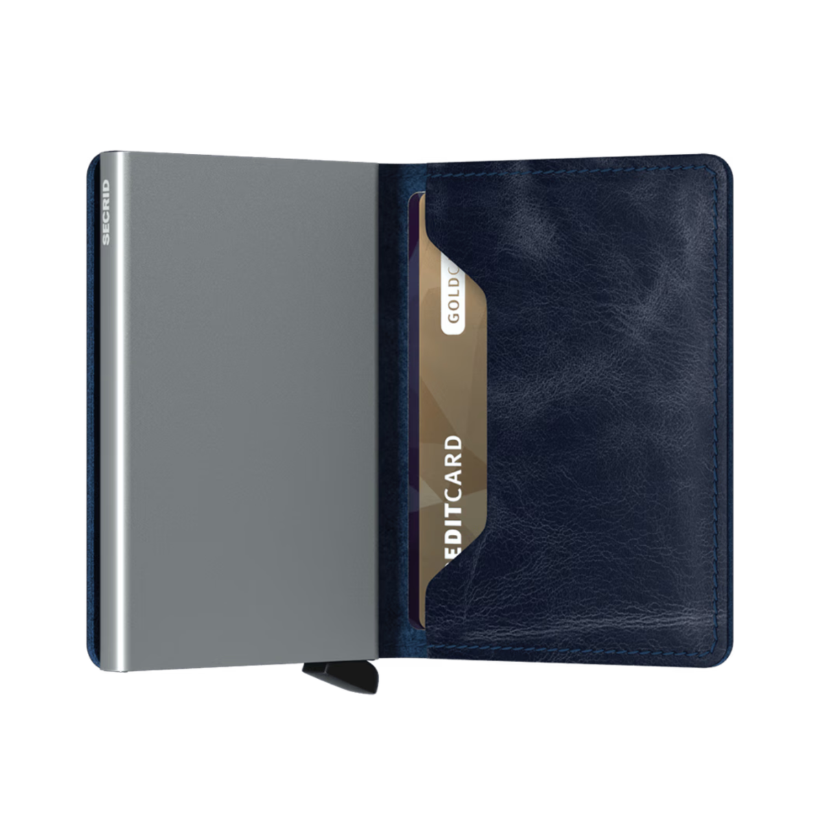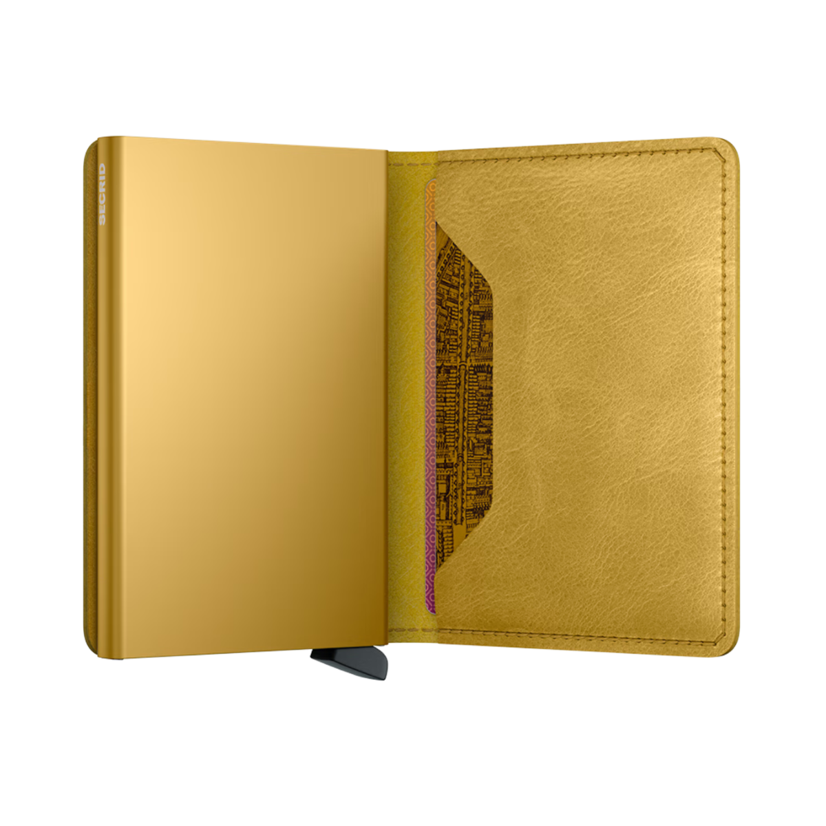 Its slim profile allows the Slimwallet to fit perfectly into any pocket. The open exterior is designed extra wide to accommodate cards, banknotes and receipts. The Cardprotector mechanism enables you to slide out cards with a simple motion, while the aluminium construction protects your cards from bending, breaking and unwanted wireless communication.