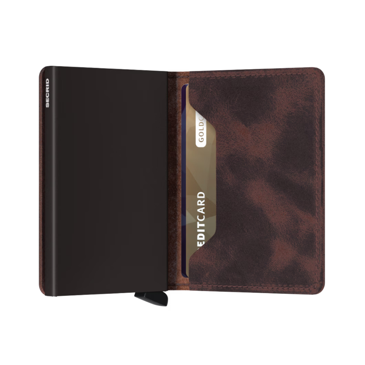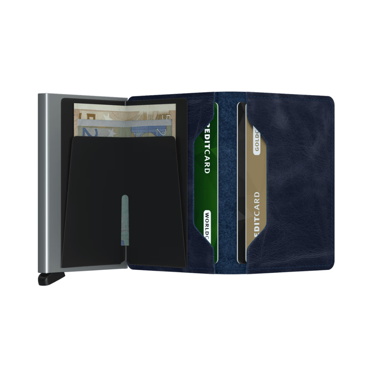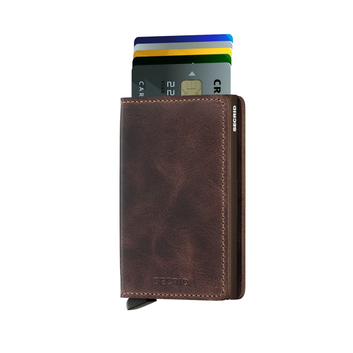 Its slim profile allows the Slimwallet to fit perfectly into any pocket. The open exterior is designed extra wide to accommodate cards, banknotes and receipts. The Cardprotector mechanism enables you to slide out cards with a simple motion, while the aluminium construction protects your cards from bending, breaking and unwanted wireless communication.