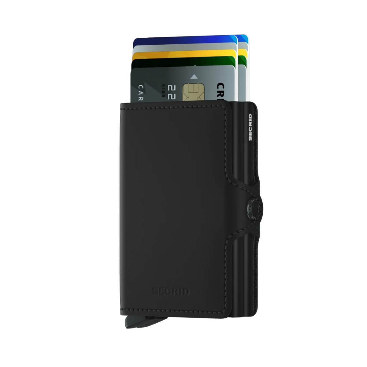 With two Cardprotectors to hold double the content, the Twinwallet carries up to 16 cards, banknotes and receipts, but remains compact in size. Together with its sturdy closure and exterior, to hold extra cards, banknotes and receipts, the Twinwallet holds much but remains compact in size.