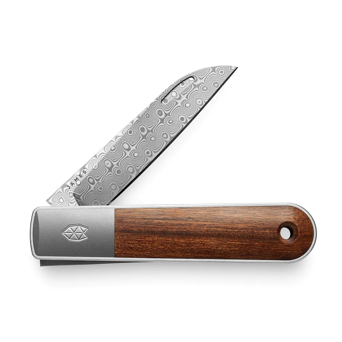 TJB's take on this classic slip-joint knife features a minimal design aesthetic and premium materials. The Wayland is based on the classic Barlow pattern: rounded end, sheepsfoot blade shape (historically this was more of a clip point), large bolsters and center-line symmetry through the scales. This sets up both a clear and challenging brief. The rules of engagement are clear, but what can we do to make interpret the Barlow in a way that is right for us? For one thing, we tried to clean up all of the hardware. We cleaned it up so much that it is, in fact, not visible at all. We also leveraged some of our favorite high-end materials like rosewood, titanium and S35VN steel. The goal is a modern look and feel, with great materials but a very clear lineage to the original Barlow concept.