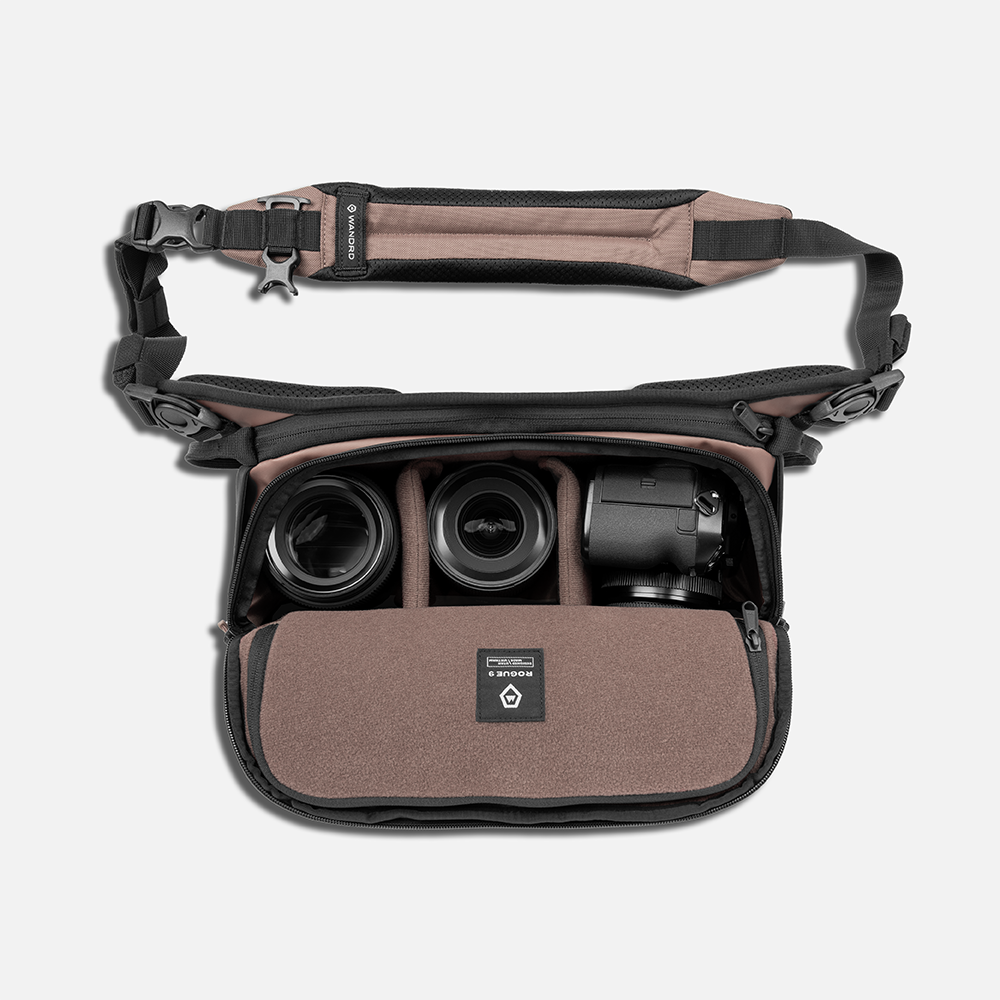 The ROGUE 9L is our largest, most capable sling—built for those who carry more and refuse to compromise. If you stay on the trails, color inside the lines, and aren’t obsessed with the marriage of style and function, this sling isn’t for you. With a reengineered shape, weatherproof materials, a patented laptop sleeve, and external attachments for a water bottle, tripod, jacket, and more, it’s designed to haul your everyday kit (and then some) while staying comfortable, organized, and ready for anything. The ROGUE 9L was deliberately engineered and obsessively tested around fitting a wider array of cameras - including the Fuji GFX 100S w/ 50mm f/3.5 + 110mm f/2 + 20-35mm f/4, Nikon Z8 w/ 24-70mm f/2.8 + 14-24mm f/2.8, Canon R5 w/ 70-200mm f/2.8L + 24-70mm f/2.8L.