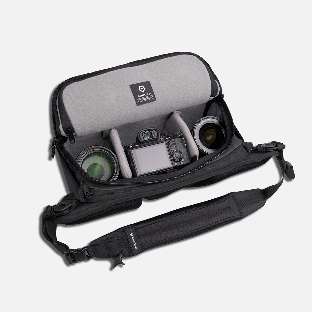 The ROGUE 6L delivers function in a streamlined, just-right form—perfect for creators, commuters, and anyone who carries more but still wants to travel light. If you stay on the trails, color inside the lines, and aren’t obsessed with the marriage of style and function, this sling isn’t for you. With a reengineered shape, weatherproof materials, a patented laptop sleeve, and external attachment for a water bottle, tripod, jacket, etc, it’s designed to haul your everyday kit while staying comfortable, organized, and ready for anything. The ROGUE 6L was deliberately engineered and obsessively tested around fitting a wider array of cameras - including the Canon R5 w/ 24-70mm f/2.8L, Sony A7 IV w/ 24-70mm f/2.8 GM II.