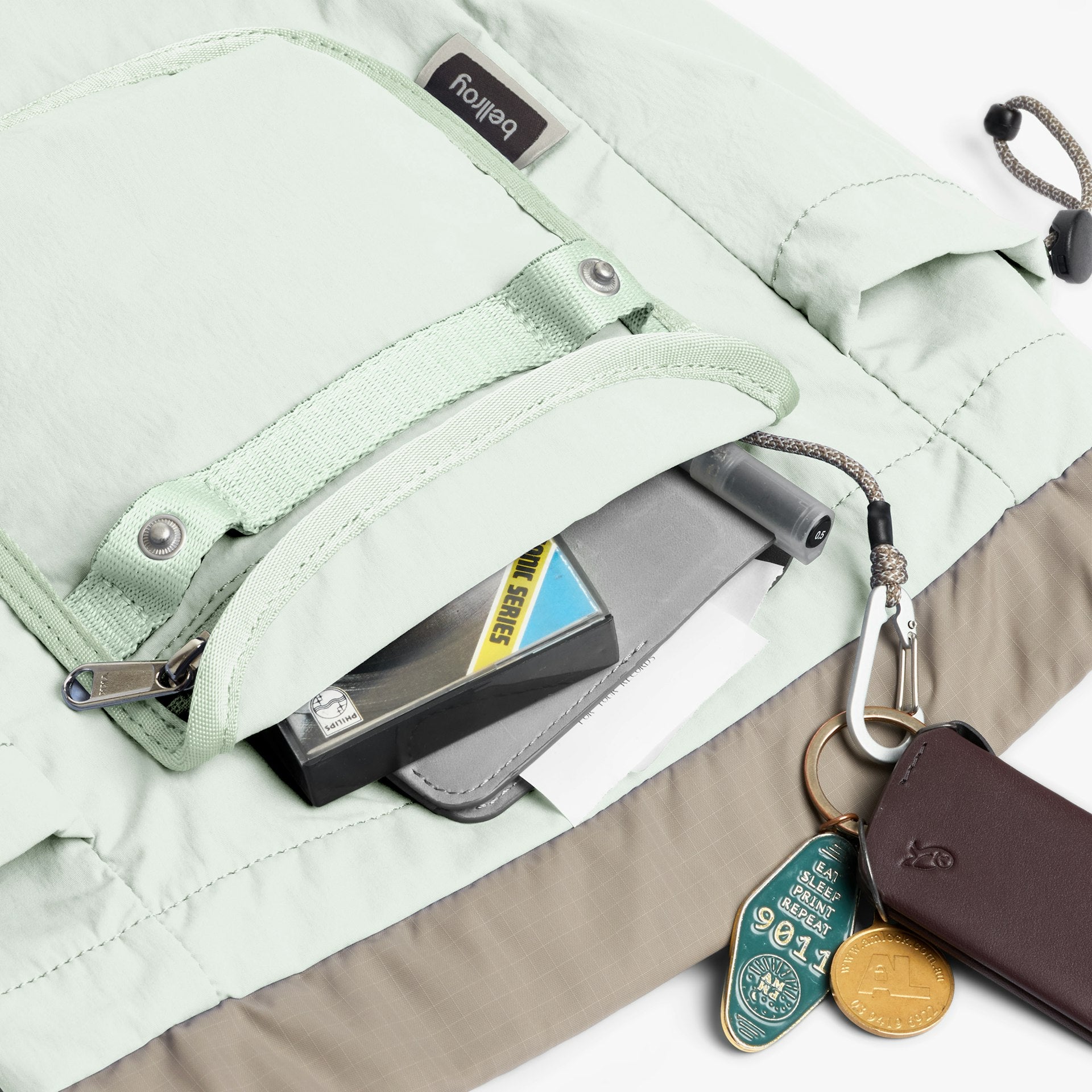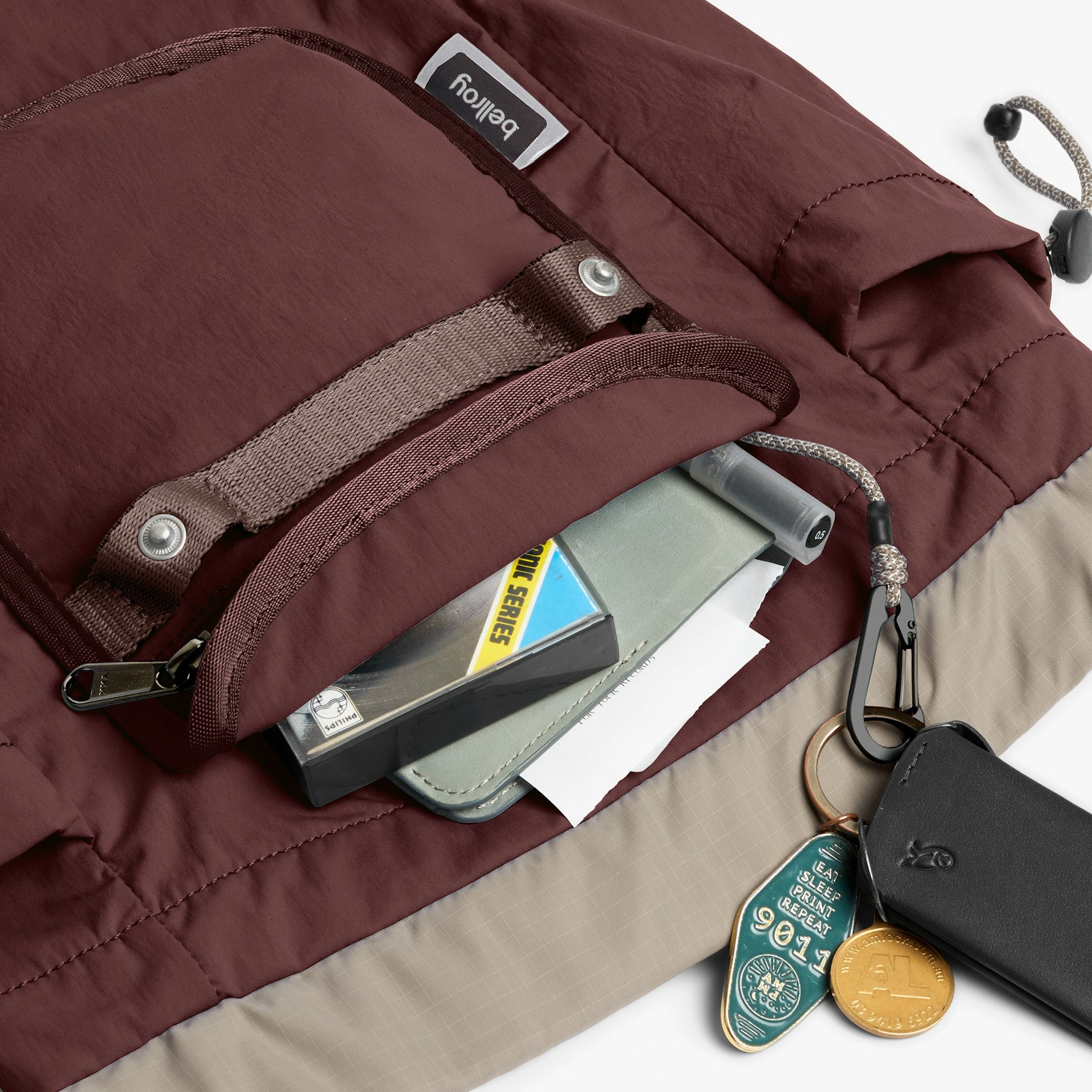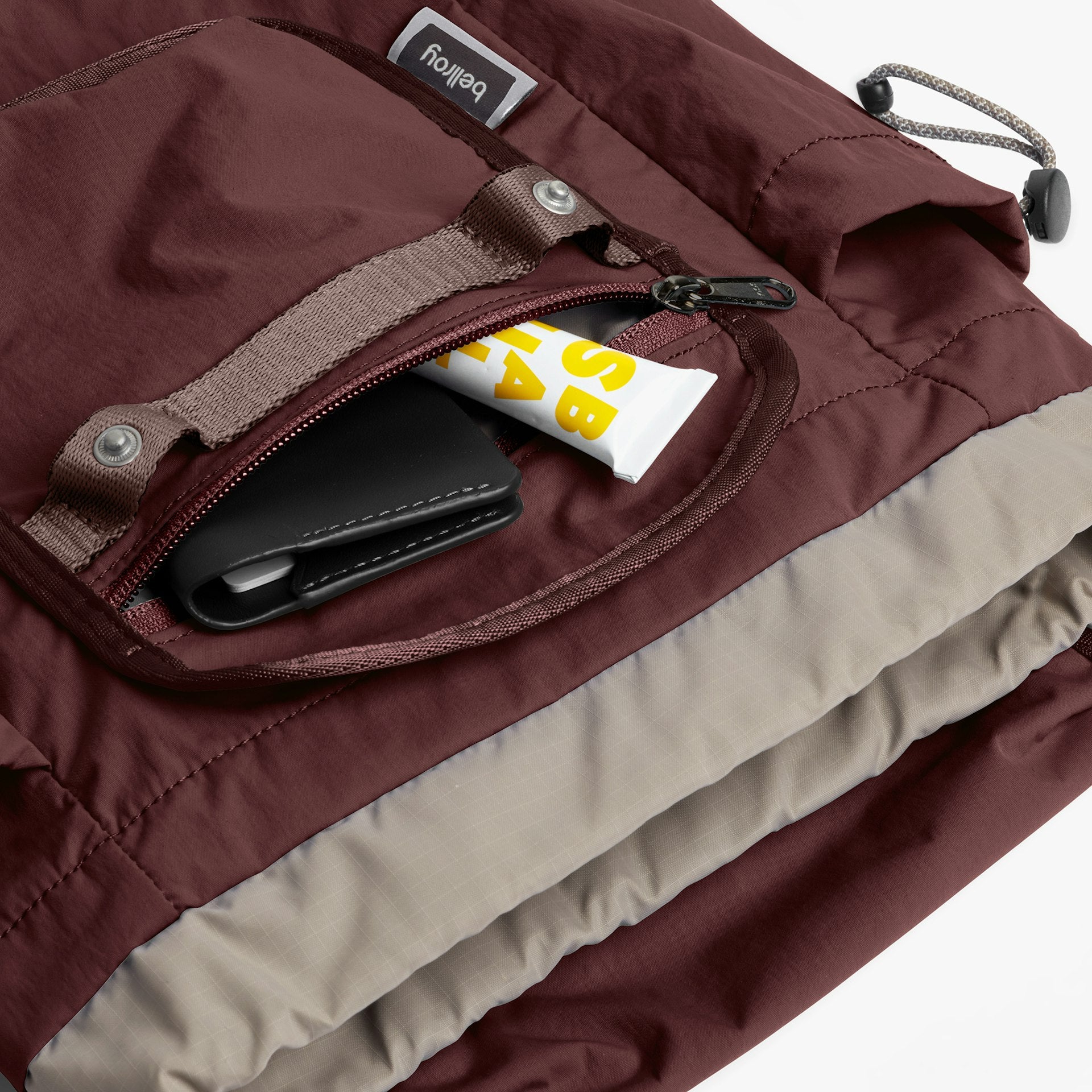 Two external drawcord pop pockets that cinch your glasses or mini water bottle in tight.