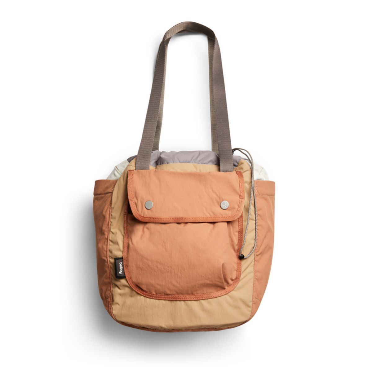 Fabric that flows, pockets that pop – this tote bag cinches closed in a flash, but is open to the things you pick up around town.