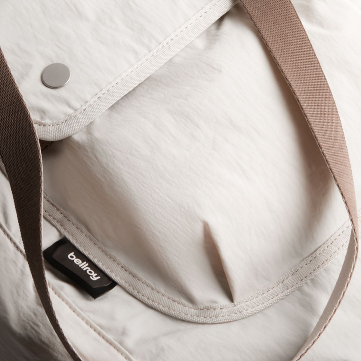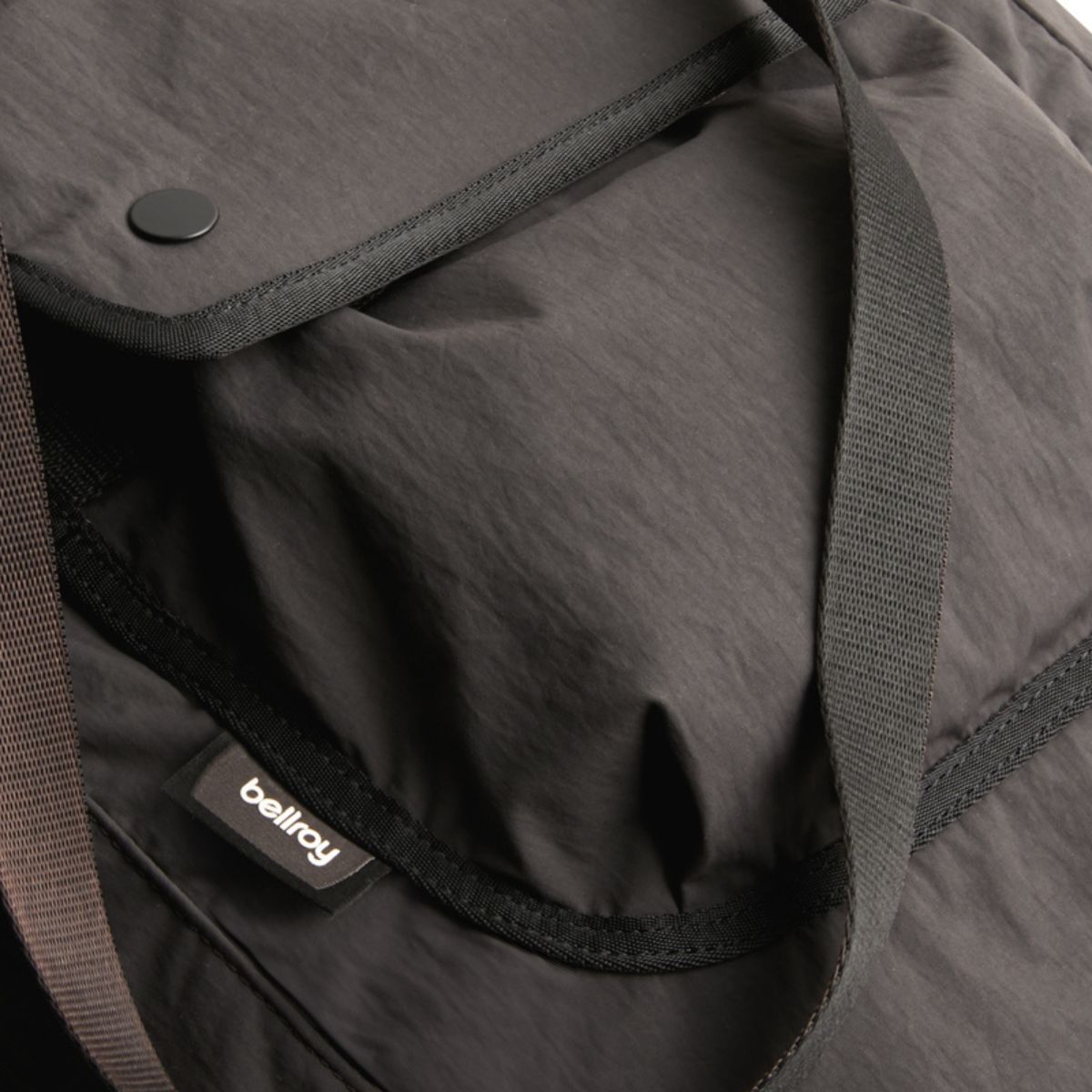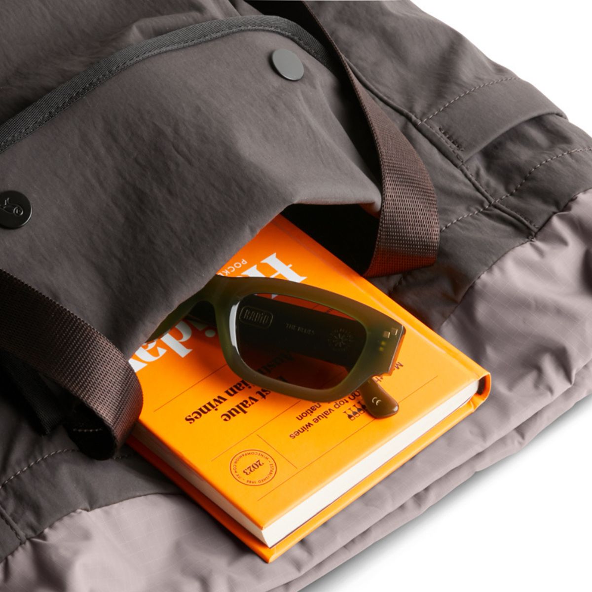 This tote bag generously squishes down to stash in your main bag, and the luggage pass-through lets you slide it on top of your wheeled luggage to take it for a spin.