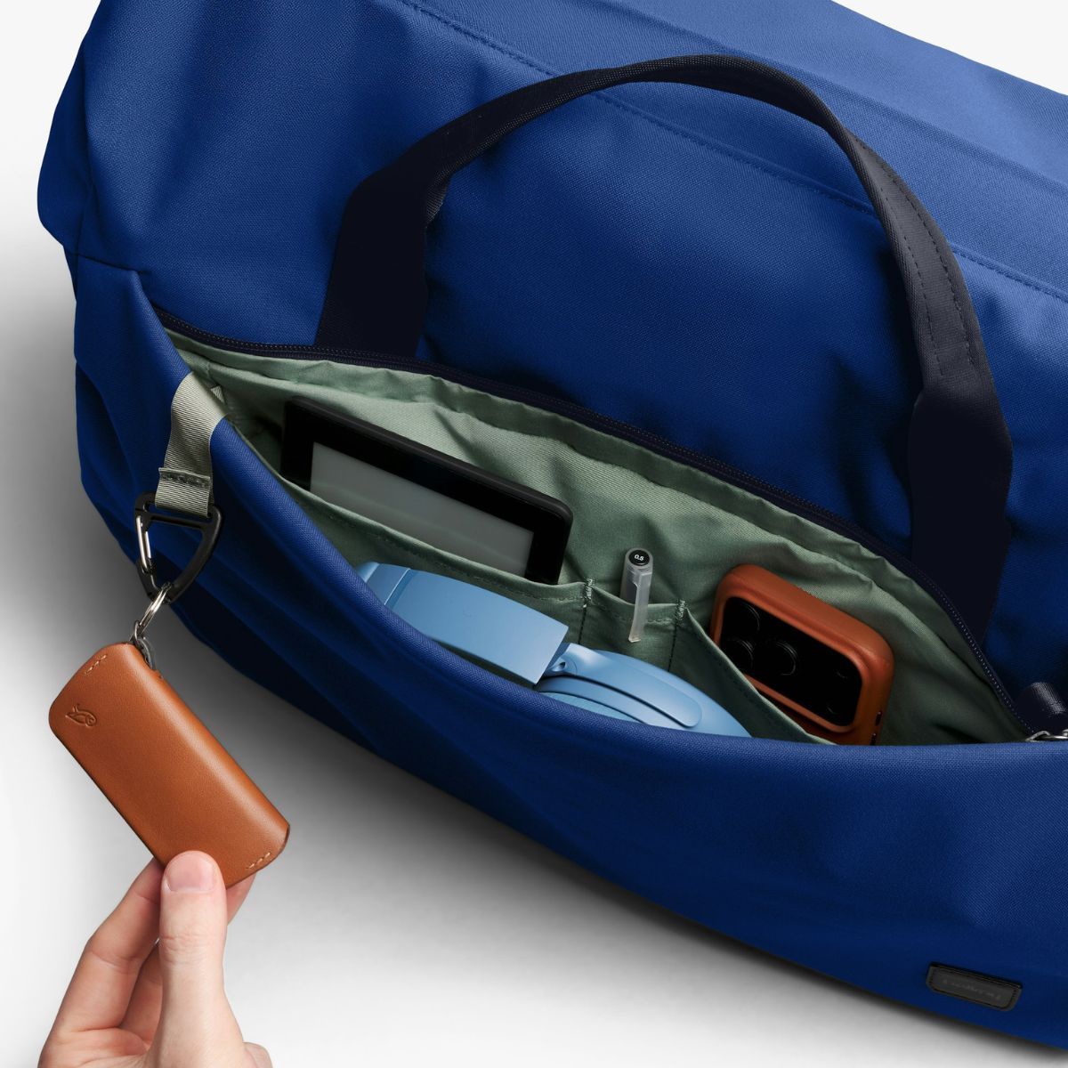 There’s a spot for everything in this weekender, but no place for packing overwhelm. An external pocket for essentials, and internally, a mesh pocket up high, and slip pockets for small items.