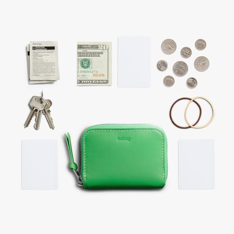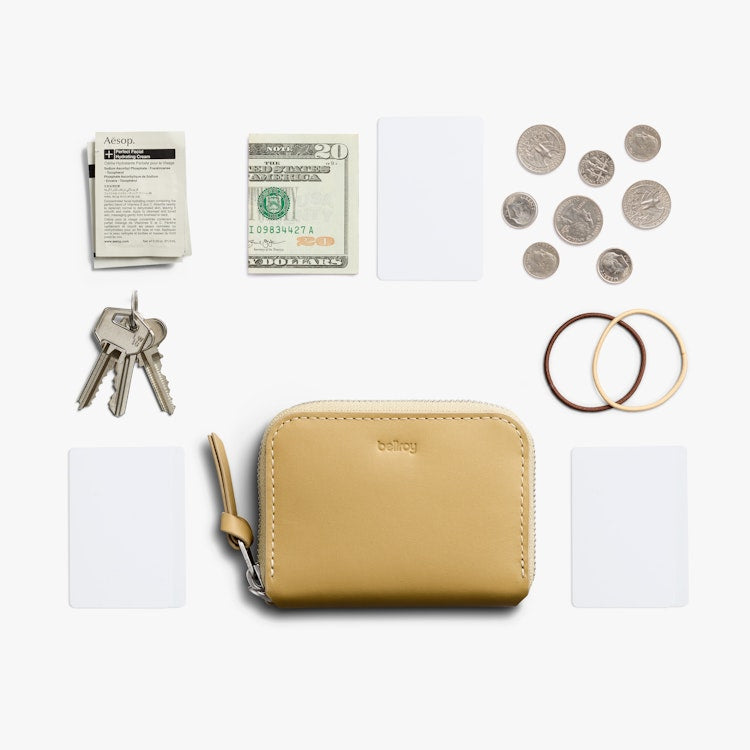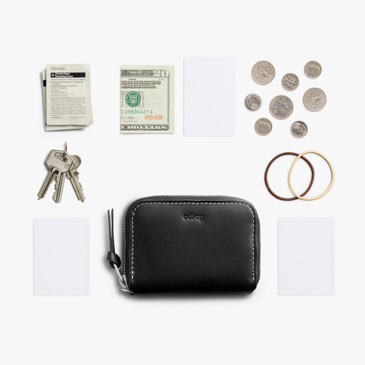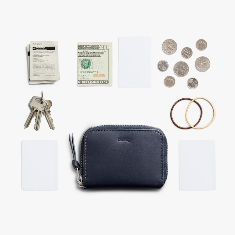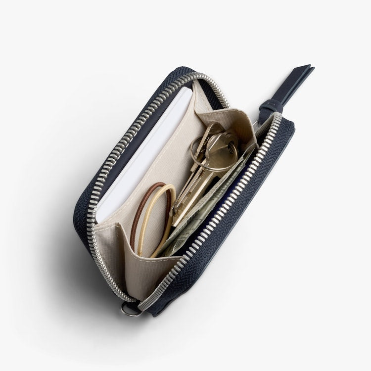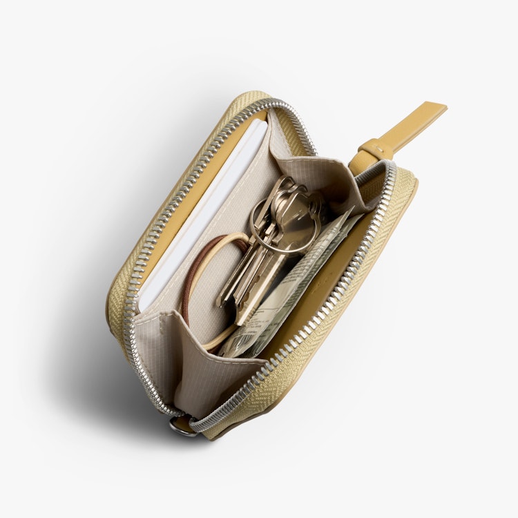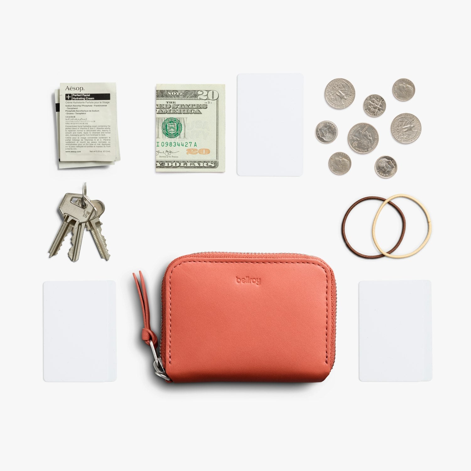 Unexpected storage in a mini wallet, with space for cards and coins – plus keys and other extras – and the security of a zip.