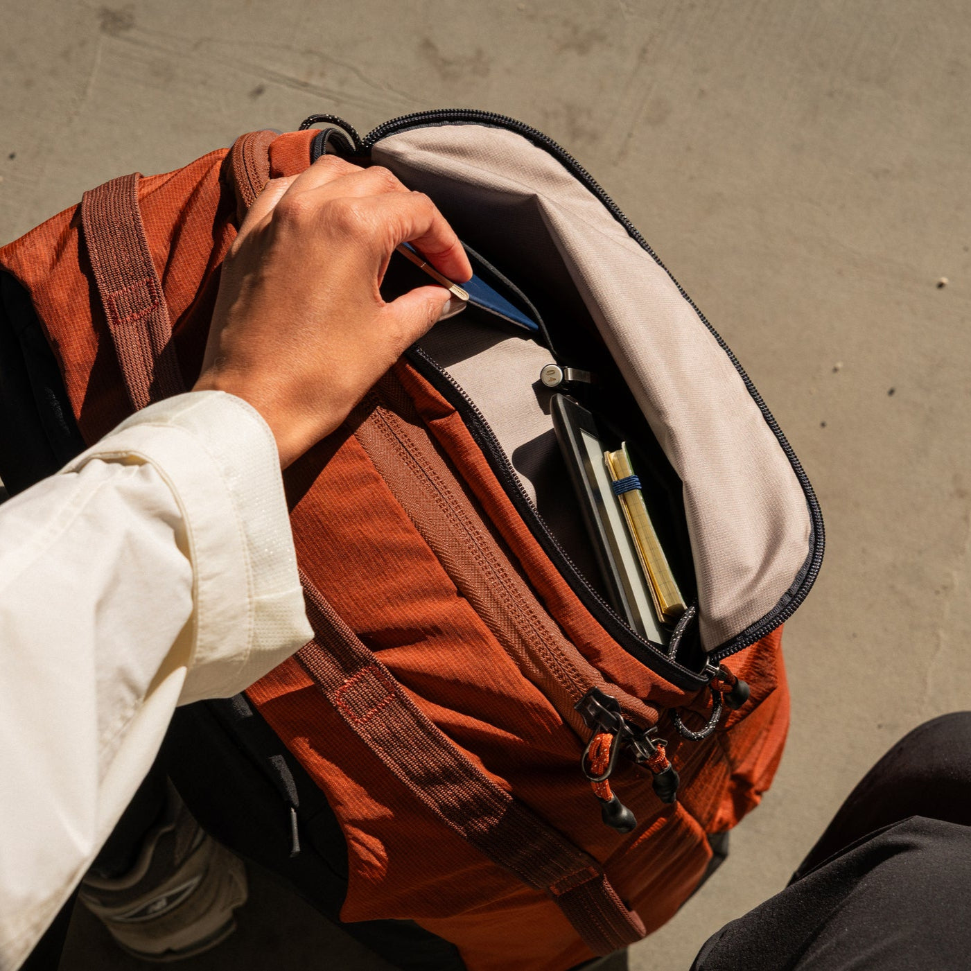 The base panel is extra strong, thanks to an abrasion-resistant coating on both sides of super-thick recycled nylon. So when your case hits the curb on that weird angle, it’s protected.