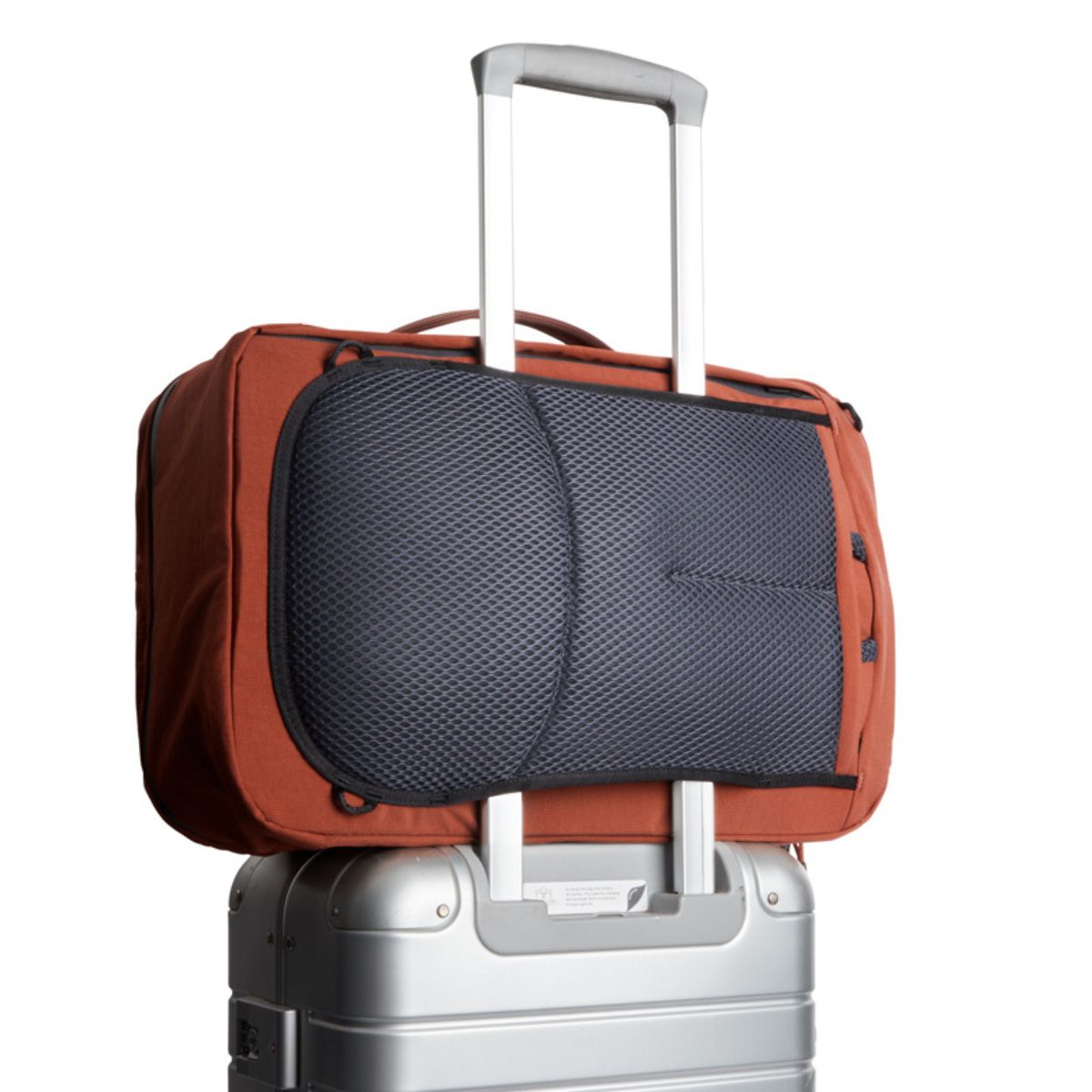 The shoulder straps tuck away neatly when you need to check it or stow it overhead, while the handy luggage pass-through and carry handle let you choose your carry mode.
