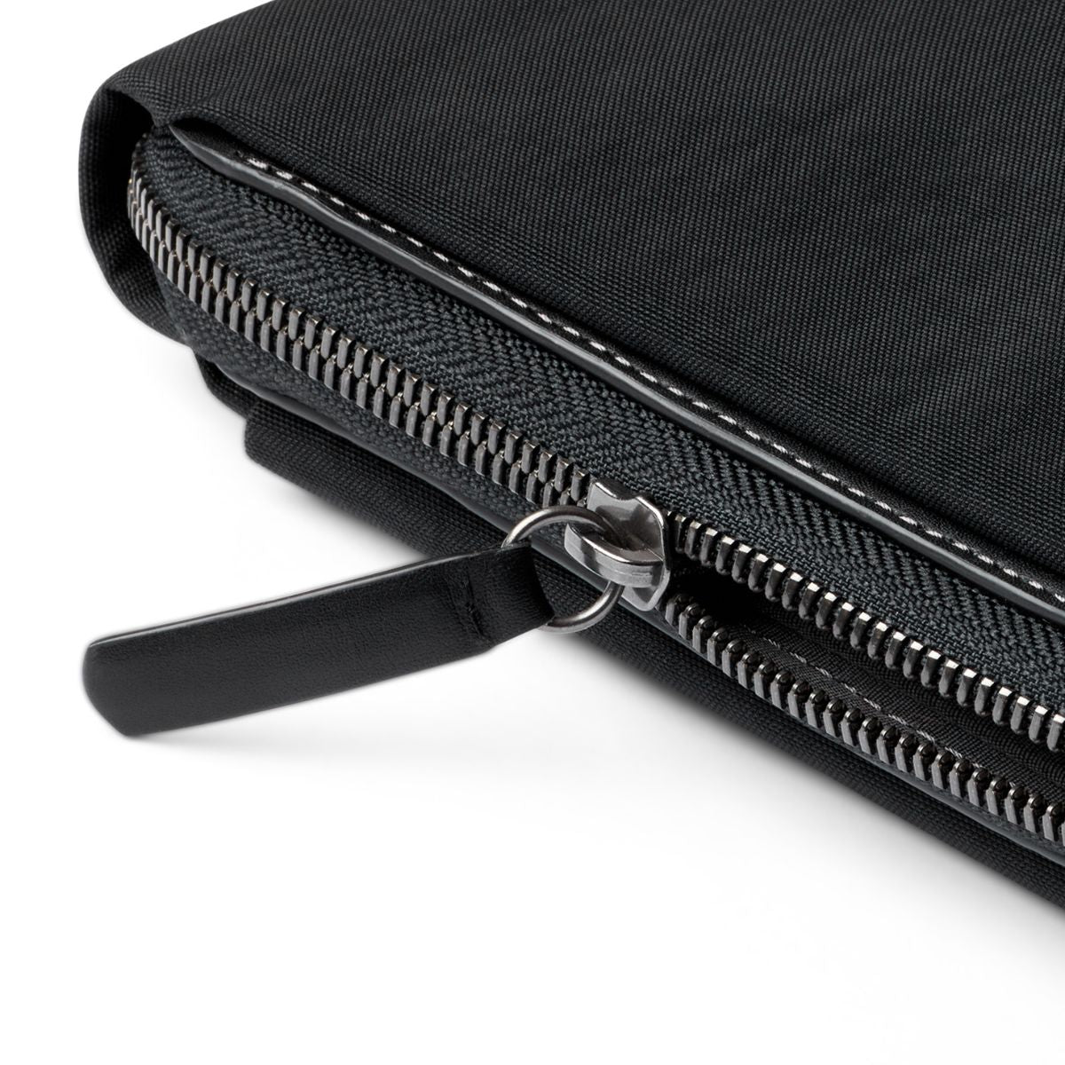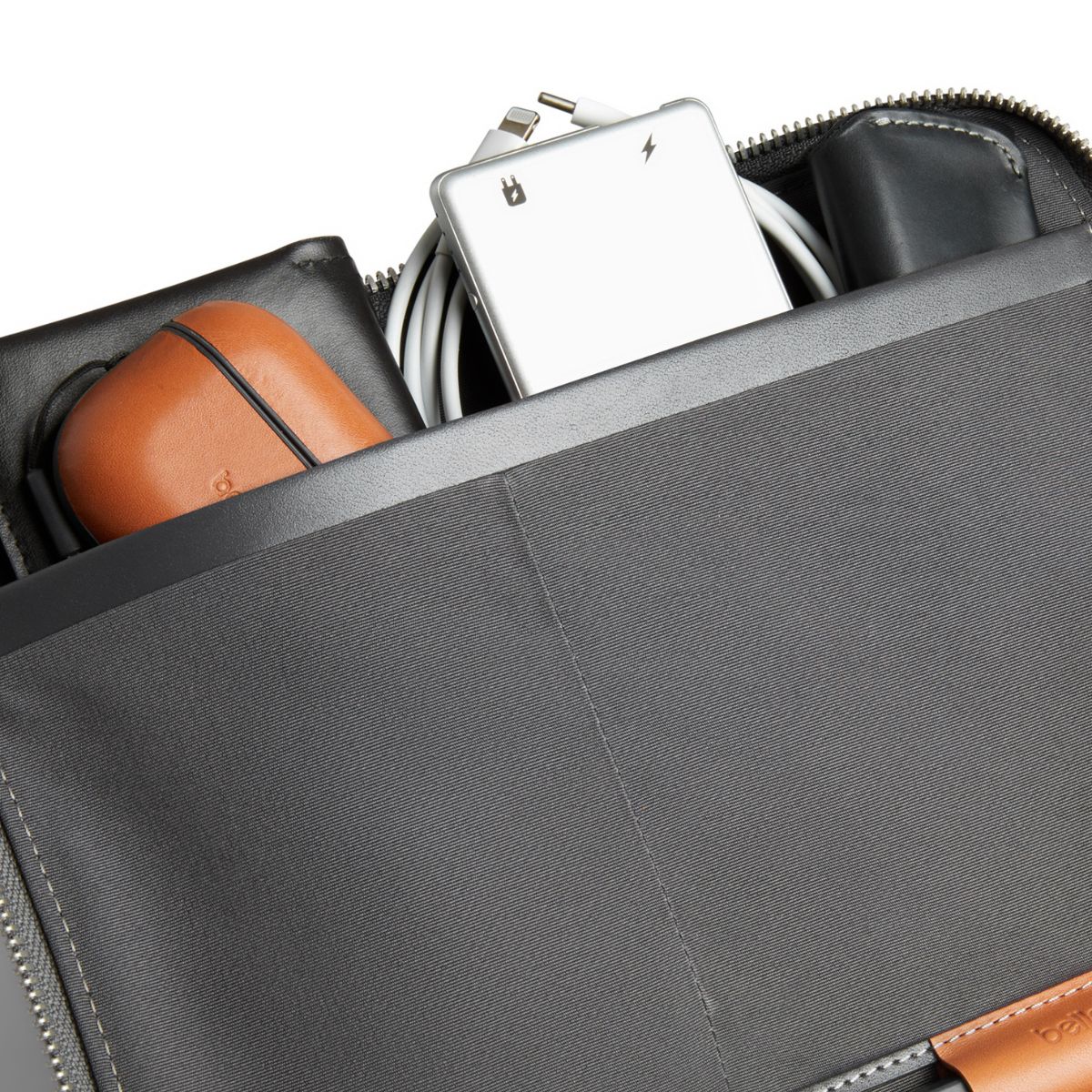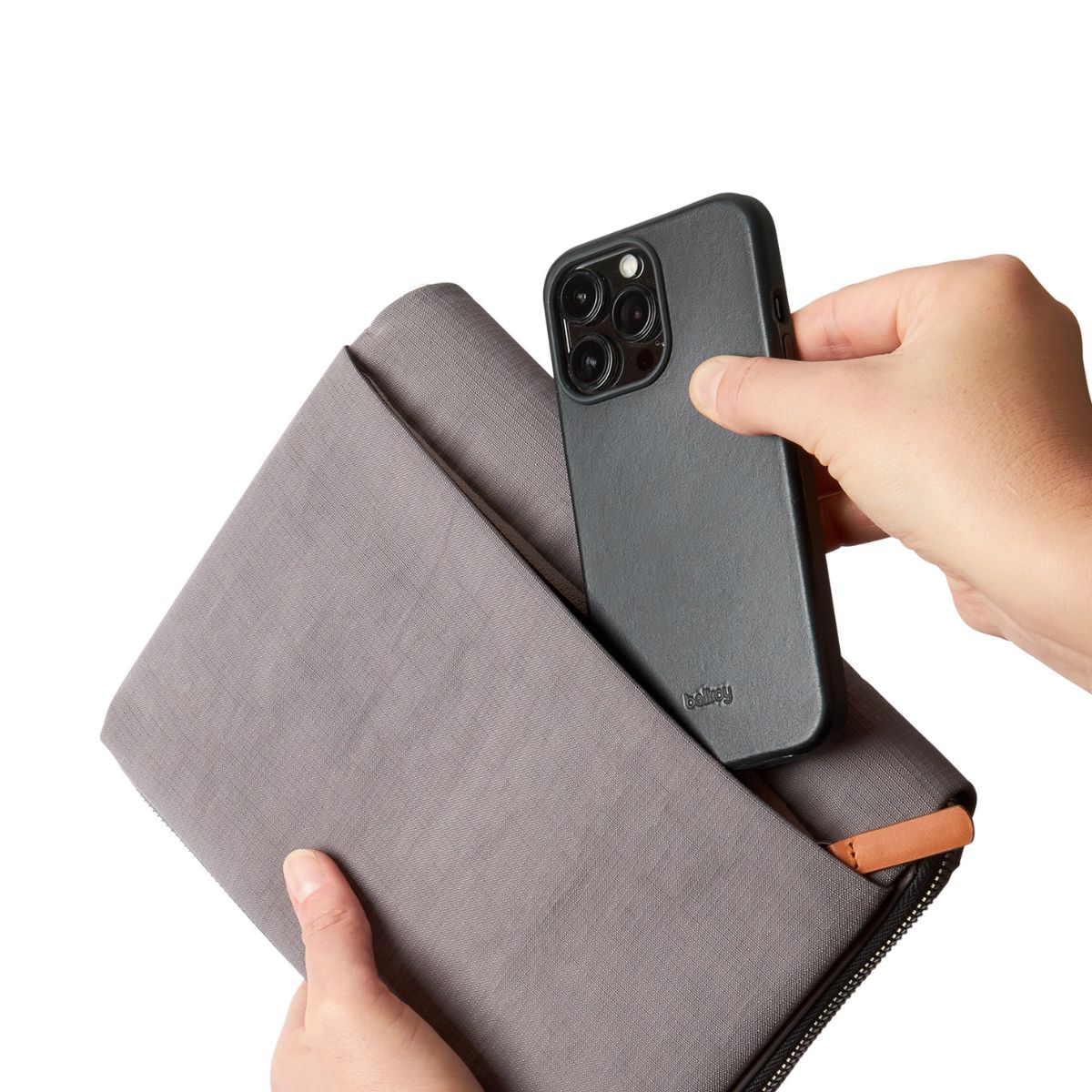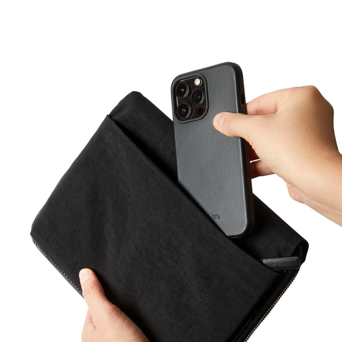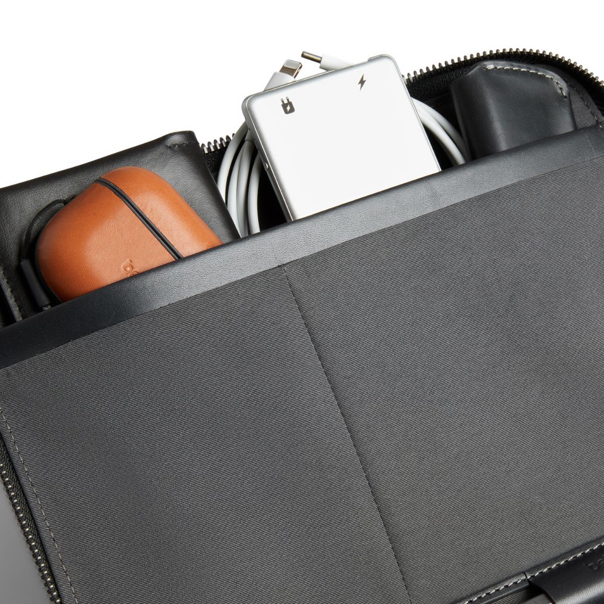 Two sleeves secure your tablet and a notebook. Internal pockets sort your earbuds and small stuff. Your pen goes in the loop, and your phone and wallet slide in the rear zip pocket.