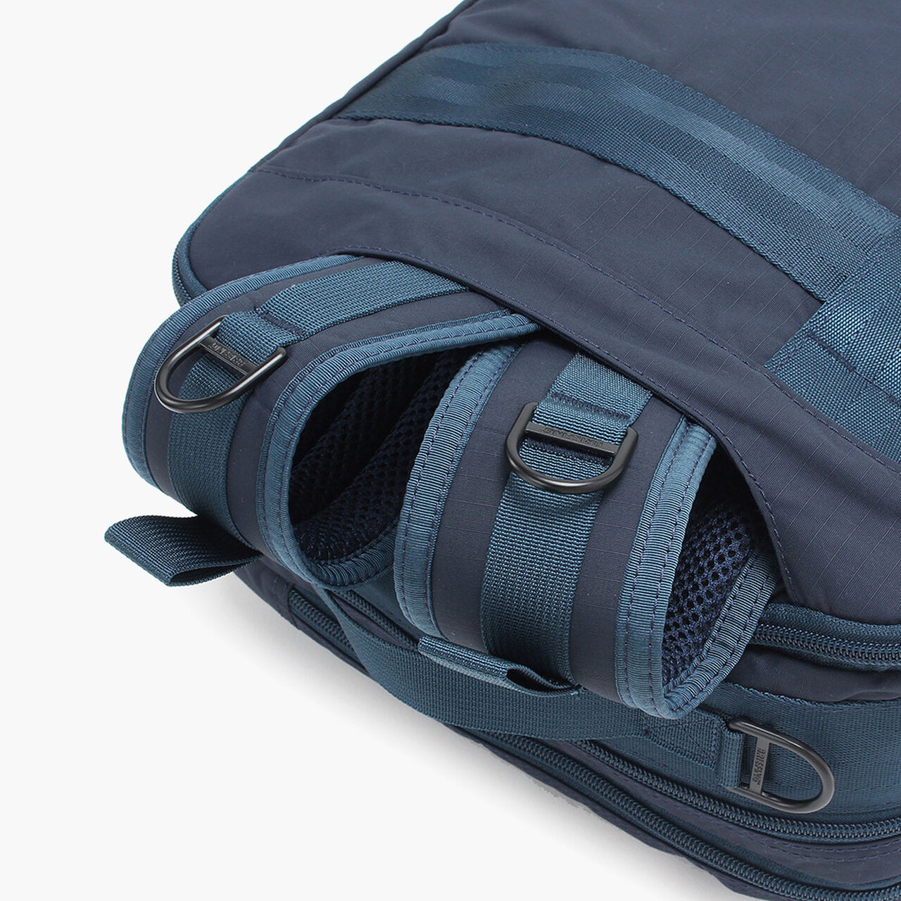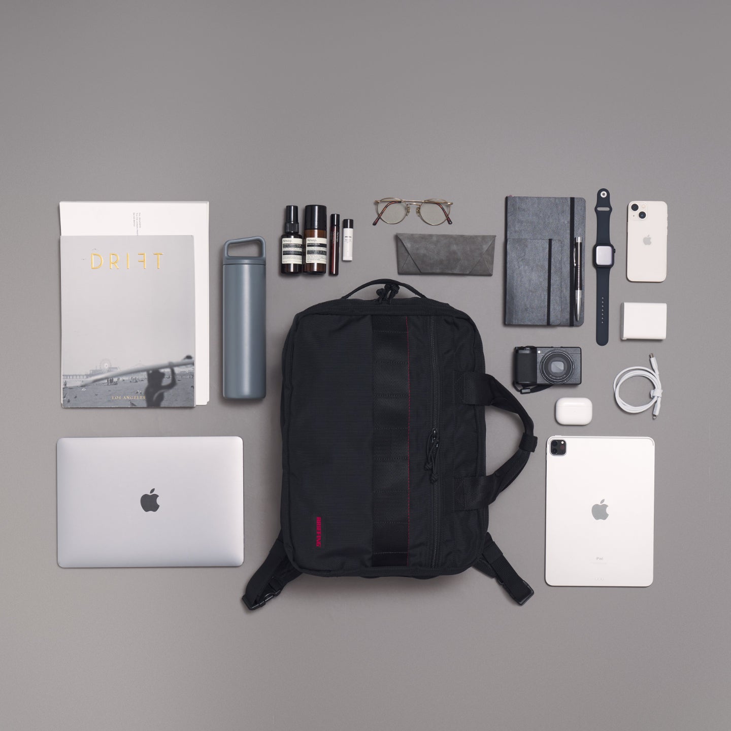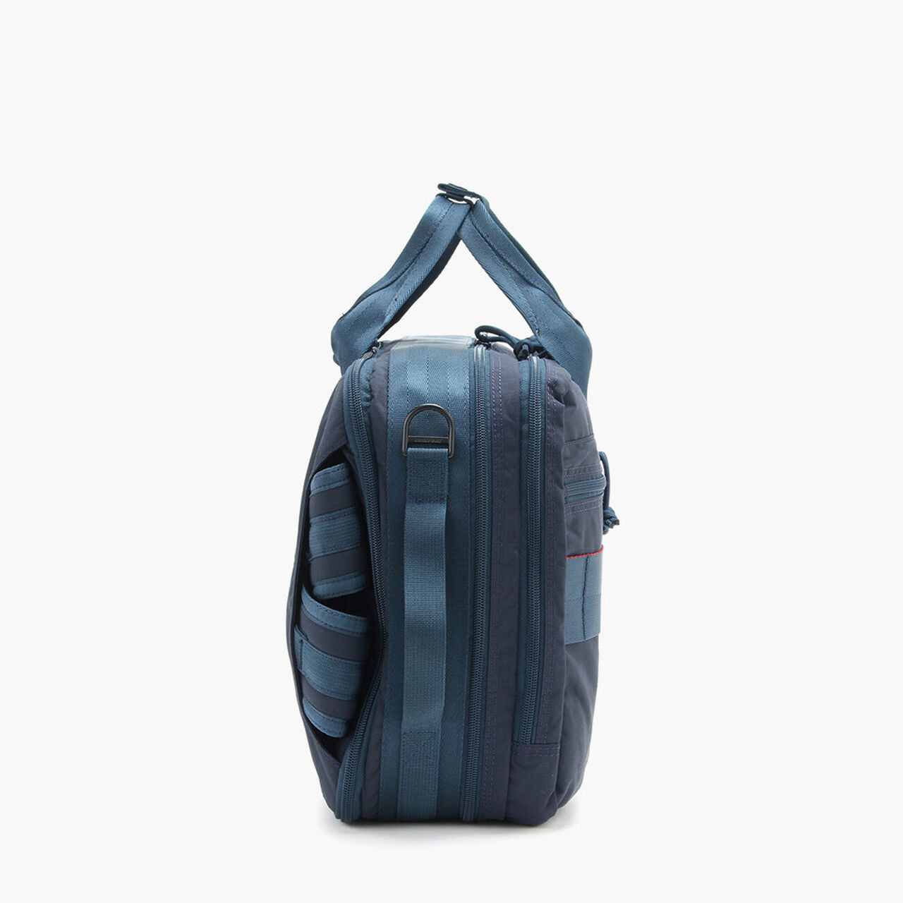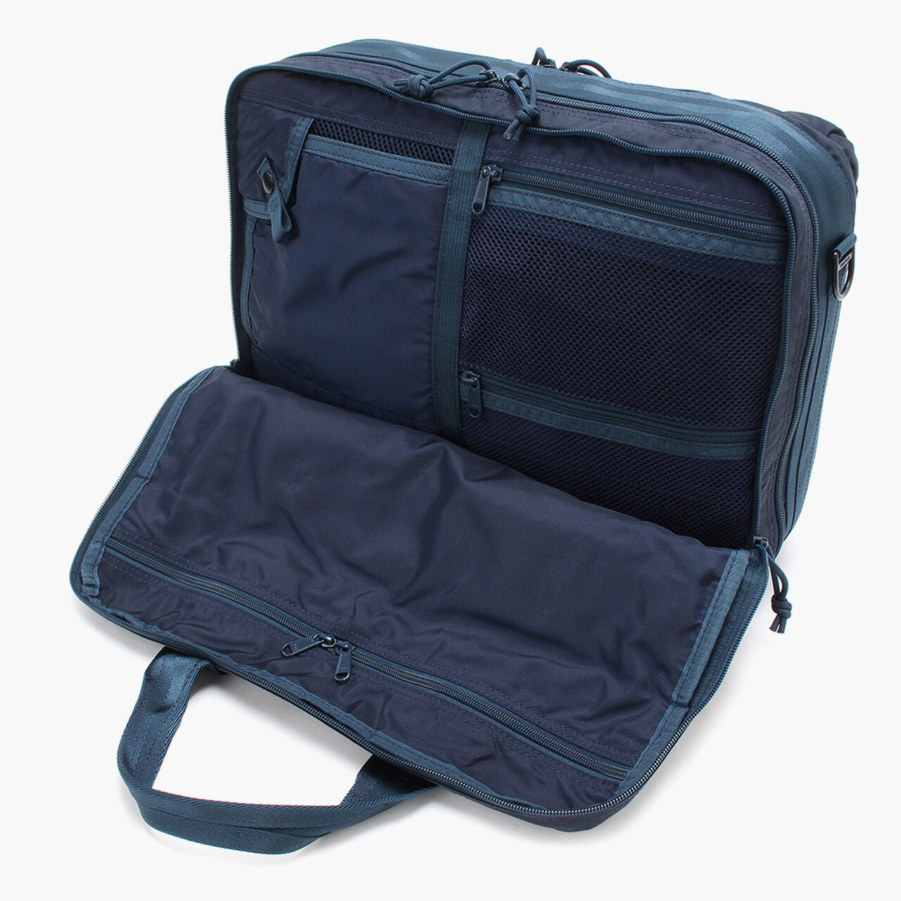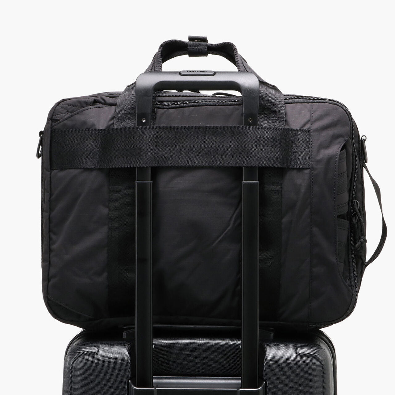 3-way briefcase with storage functions for everyday use, work and travel. It is made of lightweight and strong full-dull Cordura Ripstop Nylon with a matte texture. 3 layers of compartments with pockets on each layer allow you to separate your belongings. The B4 size compartment has a gusset on the inside for storing bulky items such as clothes. The front compartment has a padded tablet compartment and the back compartment has a PC compartment. The most important point is the excellent storage function that allows you to carry all your electronic devices together. The bag can be 3-way carring.