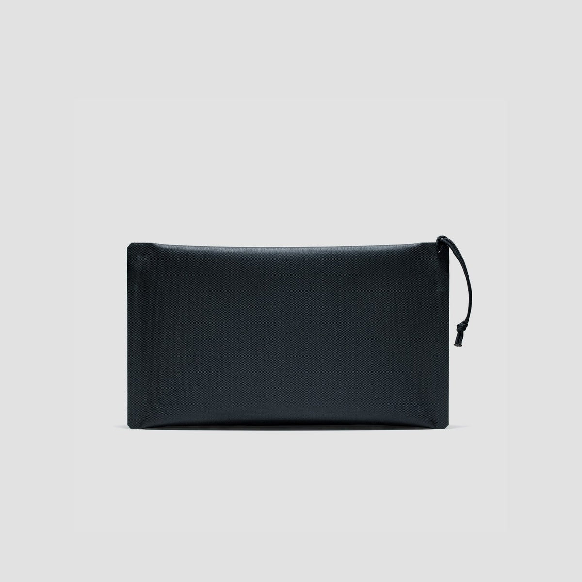 The entire body of EFP is one piece of fabric, joined at the zipper line. However, unlike most flat pouches which are simply welded along the edges, ours offers true volume end-to-end allowing it to expand and conform to what you need. It’s a simple form factor with our signature patterning & utility-forward design.