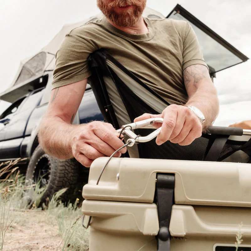 Secure larger itemsUse the 24ʺ cable to secure larger items like helmets, jackets, or bags.