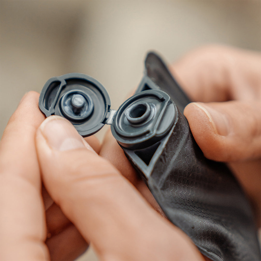 Carrying less makes for better trips, and the little things add up fast. The FlatPak™ Toiletry Bottles were developed with the idea that the bottle should only be as big as the fluid inside. These welded Cordura fabric bottles are several times lighter and smaller than silicone bottles of the same volume.