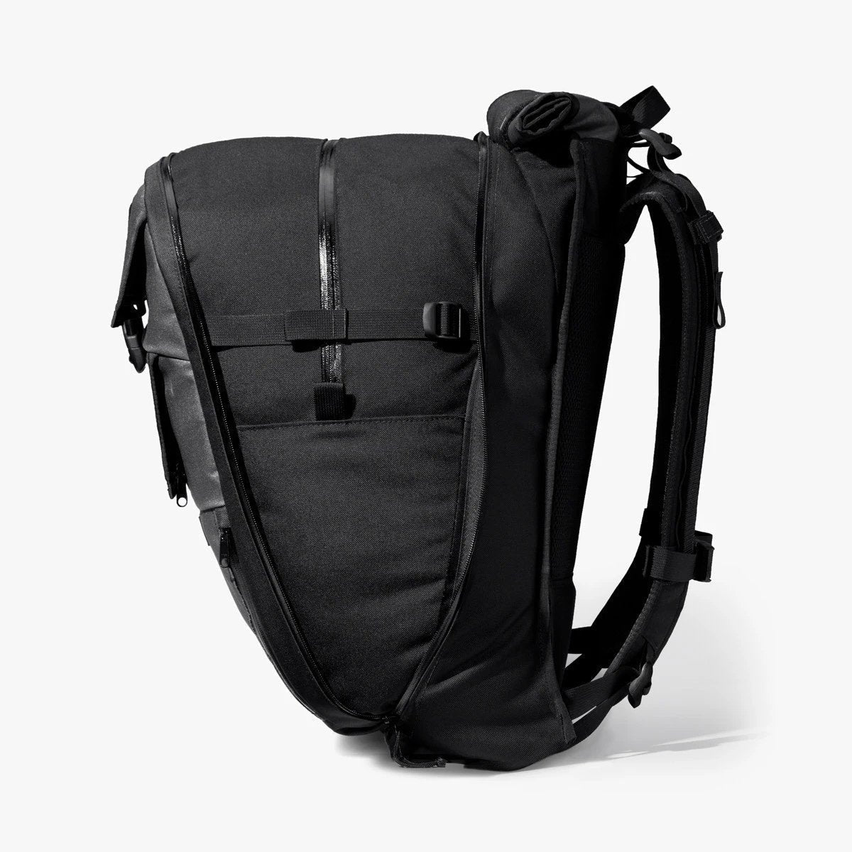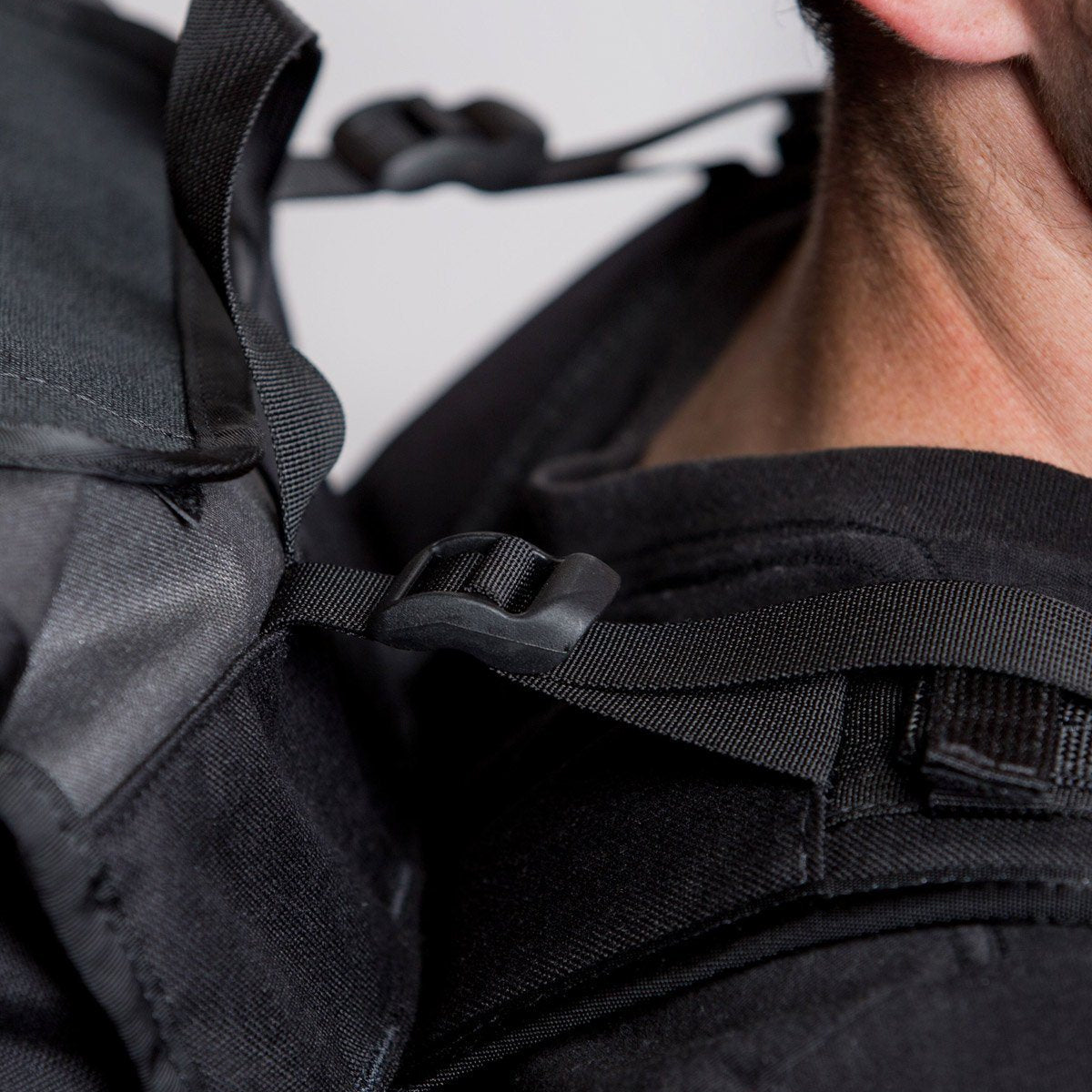 Optimal pack organization is achieved with six distinct sections: two large and two small front pockets, a rear roll-top stuff compartment, and the main expanding central section. The Vandal also features waterproof fabrics, YKK Aquaguard zippers, and two Arkiv rails on the should harness for the attachment of extra utility pouches.