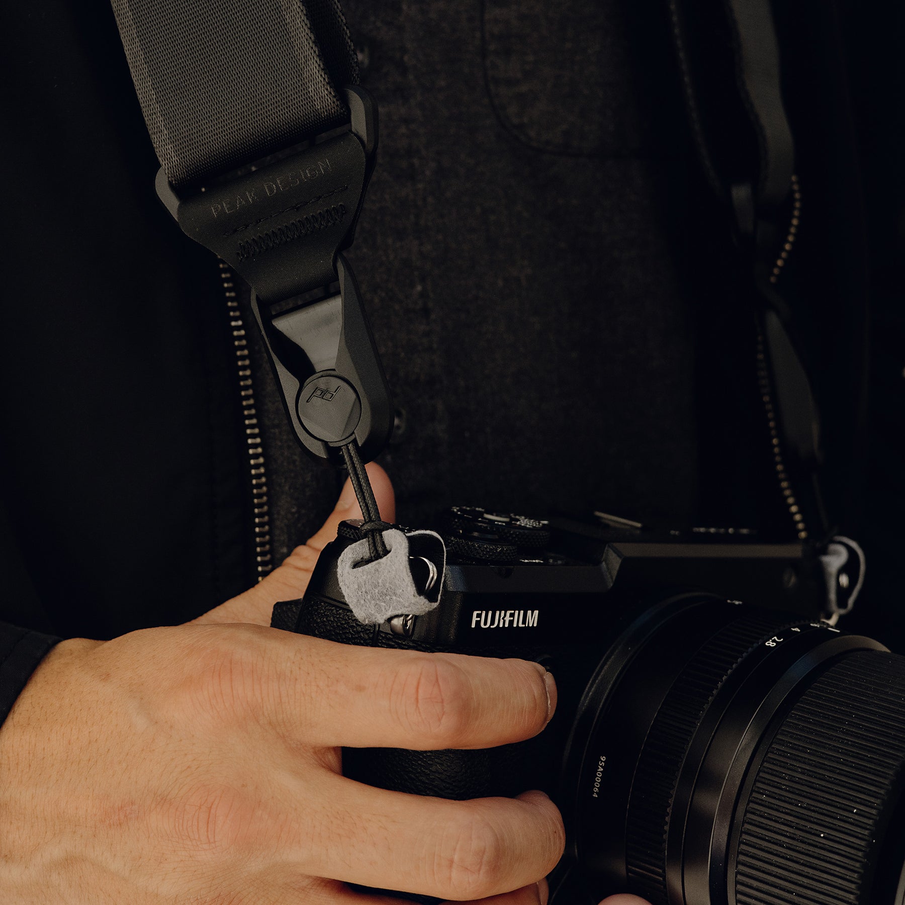 Beyond the customizations listed, all features, specs, and materials are identical to our standard Slide. Beautiful, low-profile, adjustable, quick-connecting, and configurable to your gear, Slide can be worn as a sling, neck, or shoulder strap. Internally-padded nylon webbing has a smooth side that glides over clothing in sling mode and a grippy side that prevents slipping in shoulder mode. Dual quick-adjusters provide instant access and easy reconfiguration. The unique Anchor Link system connects quickly and dual points of connection keep your camera more stable than traditional sling straps. Each Anchor holds over 200lbs (90kg), strong enough to keep the heaviest of pro rigs safe.