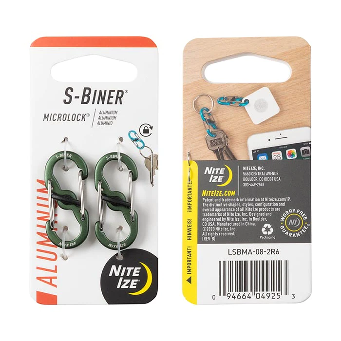 The iconic S-Biner design allows quick and easy attachment using its unique double-gated design. This innovative micro-sized dual carabiner has a center locking lever activated with a simple twist to keep items secure.